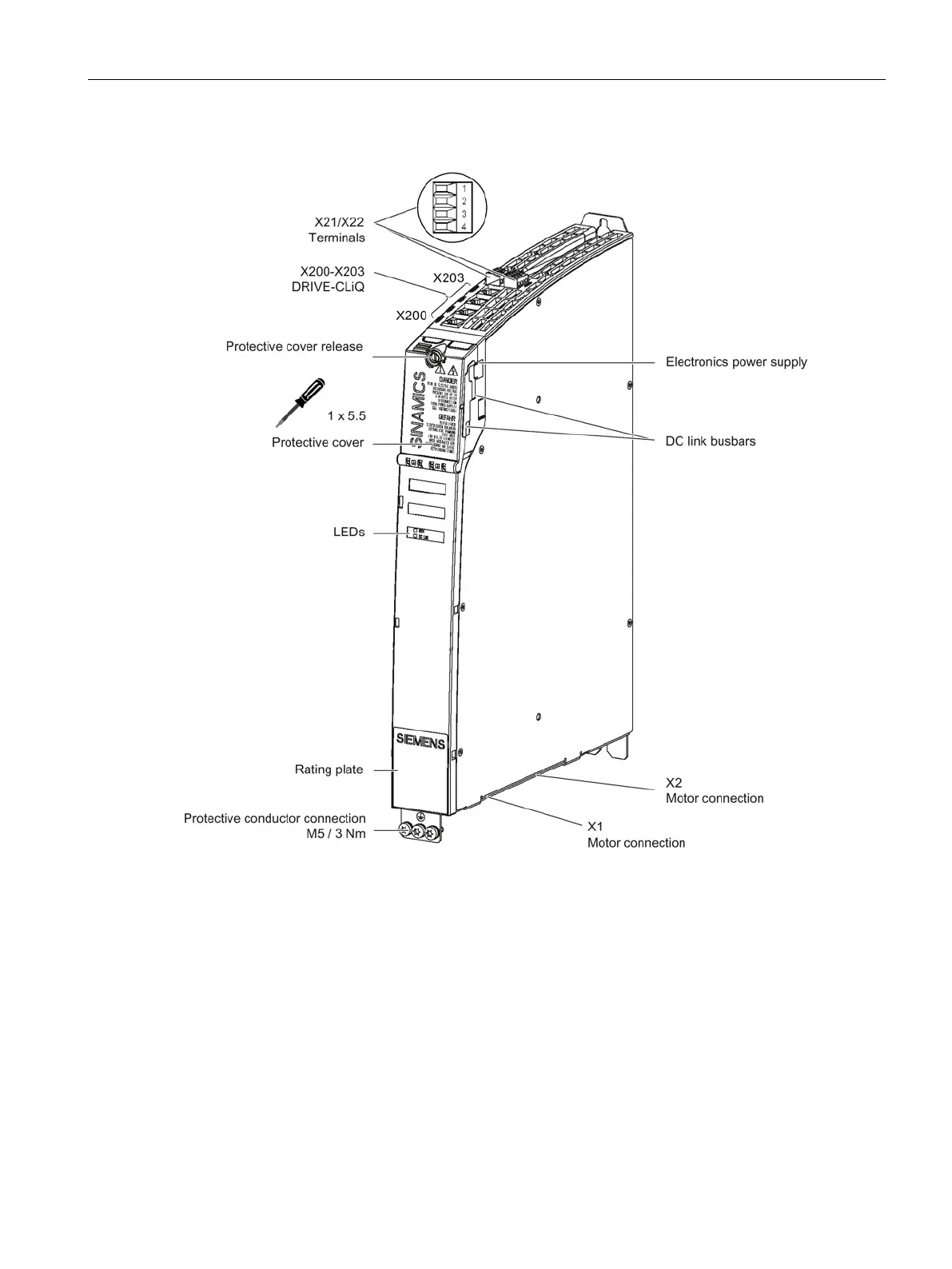 Figure 6-2 Interface overview, Double Motor Module Booksize with internal air cooling (example: 2 x 5 A)