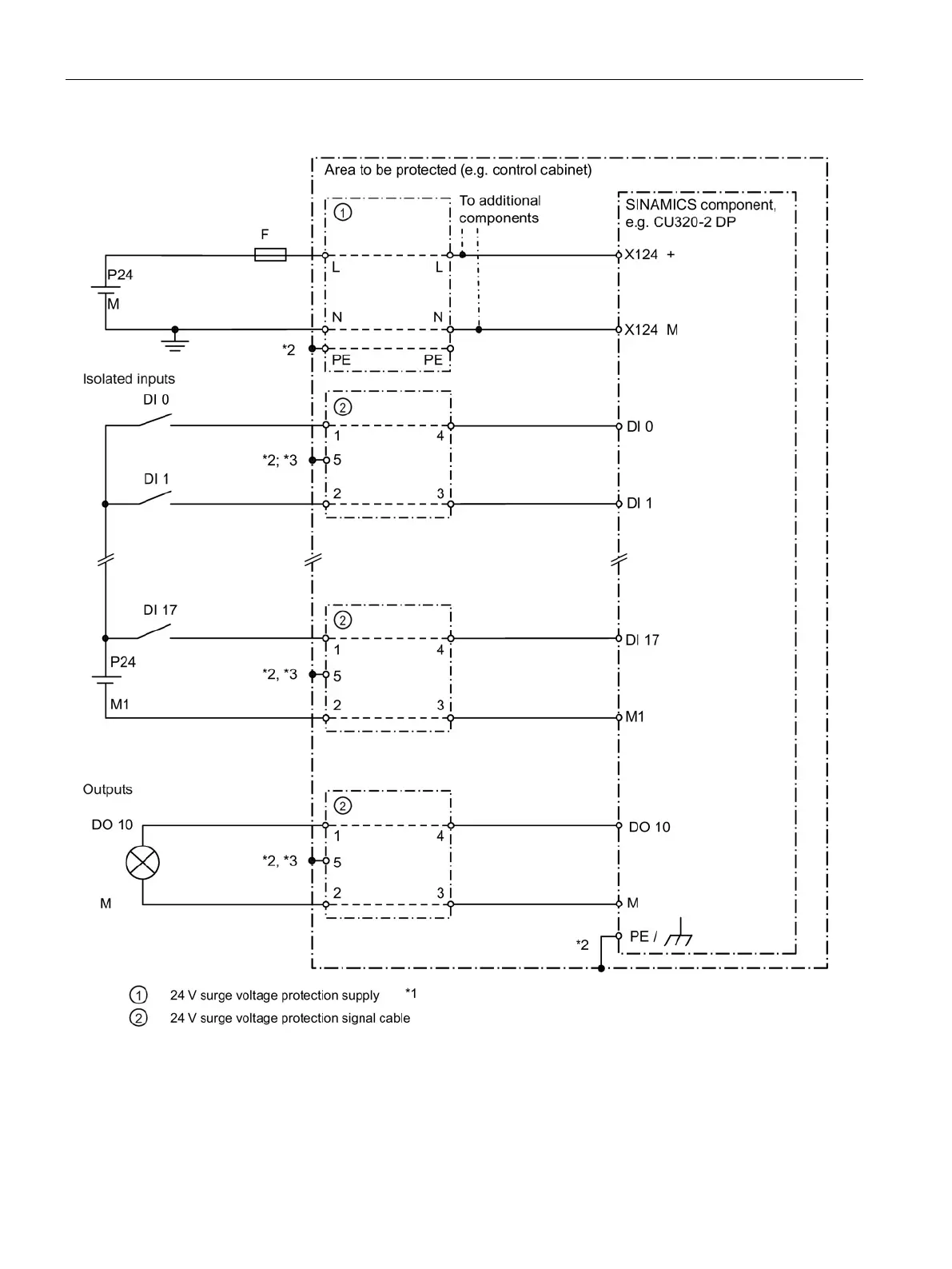 Figure 12-23 Connection example: Surge voltage protection components from Weidmüller connected to SINAMICS