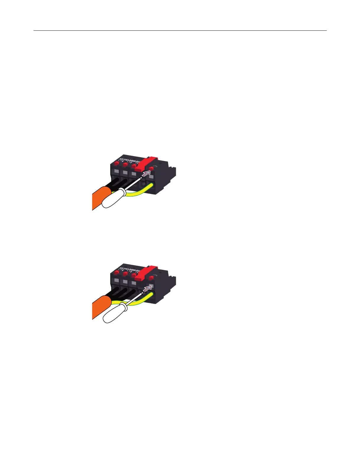 1. Using a slotted screwdriver 1.0 x 5.5 mm, press the terminals horizontally into the housing