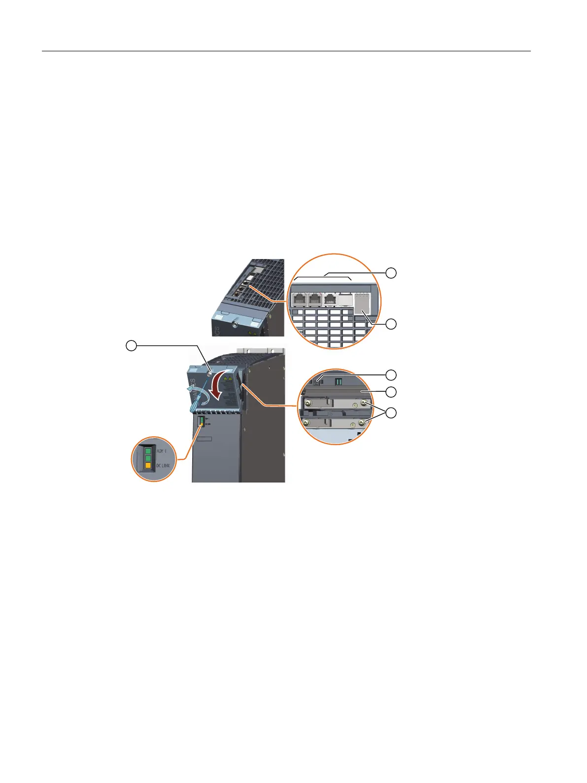 Figure8-3 Interface overview of Motor Modules 3 ... 30 A, 2x3 ... 2x18 A (front and upper sides)