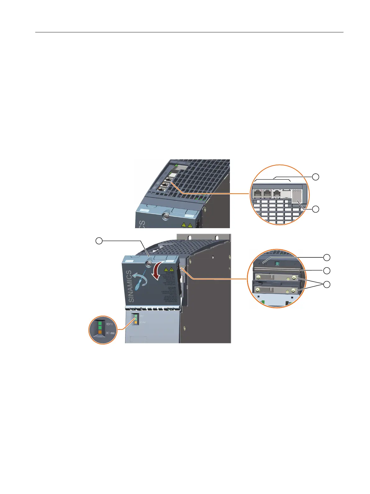 Figure8-34 Interface overview, Motor Modules 45 A and 60 A (front and upper side)