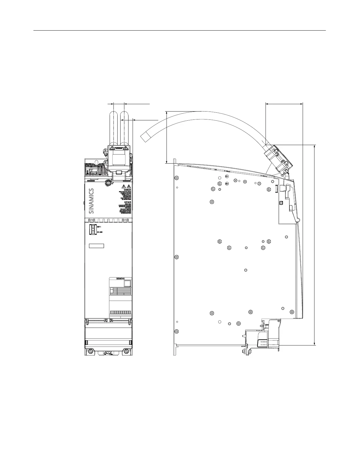 Figure11-13 Dimension drawing of a 100mm wide component (Motor Module) with 72A DC link