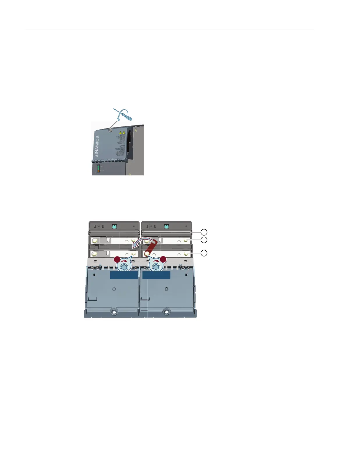 2. Loosen the DC link screws and swing over the DC link bridge.