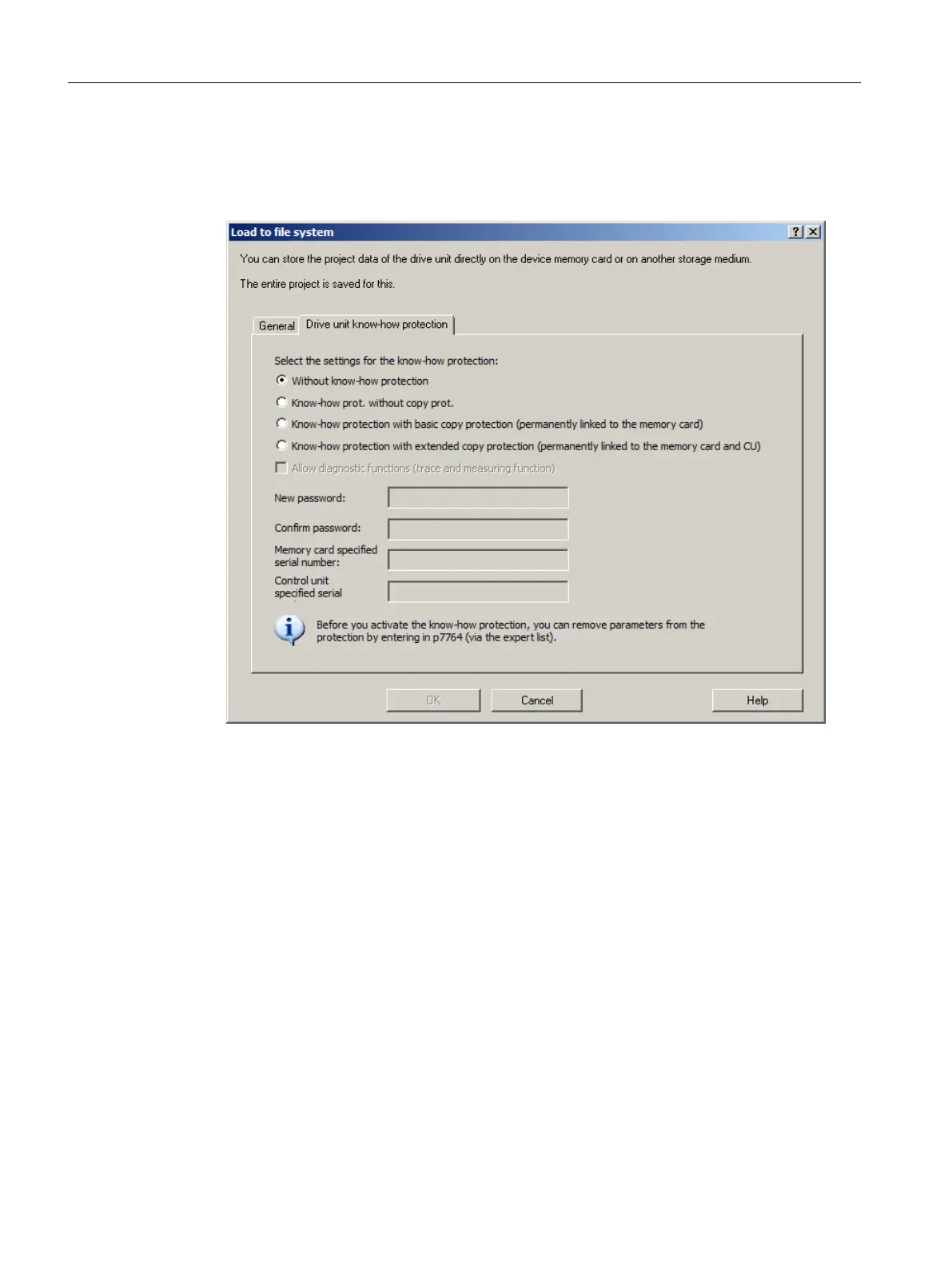 Make the settings for the know-how protection on the "Drive unit know-how protection" tab.