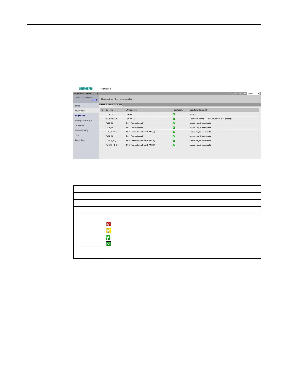 2. Click the "Service overview" tab. All drive objects of the drive are listed.