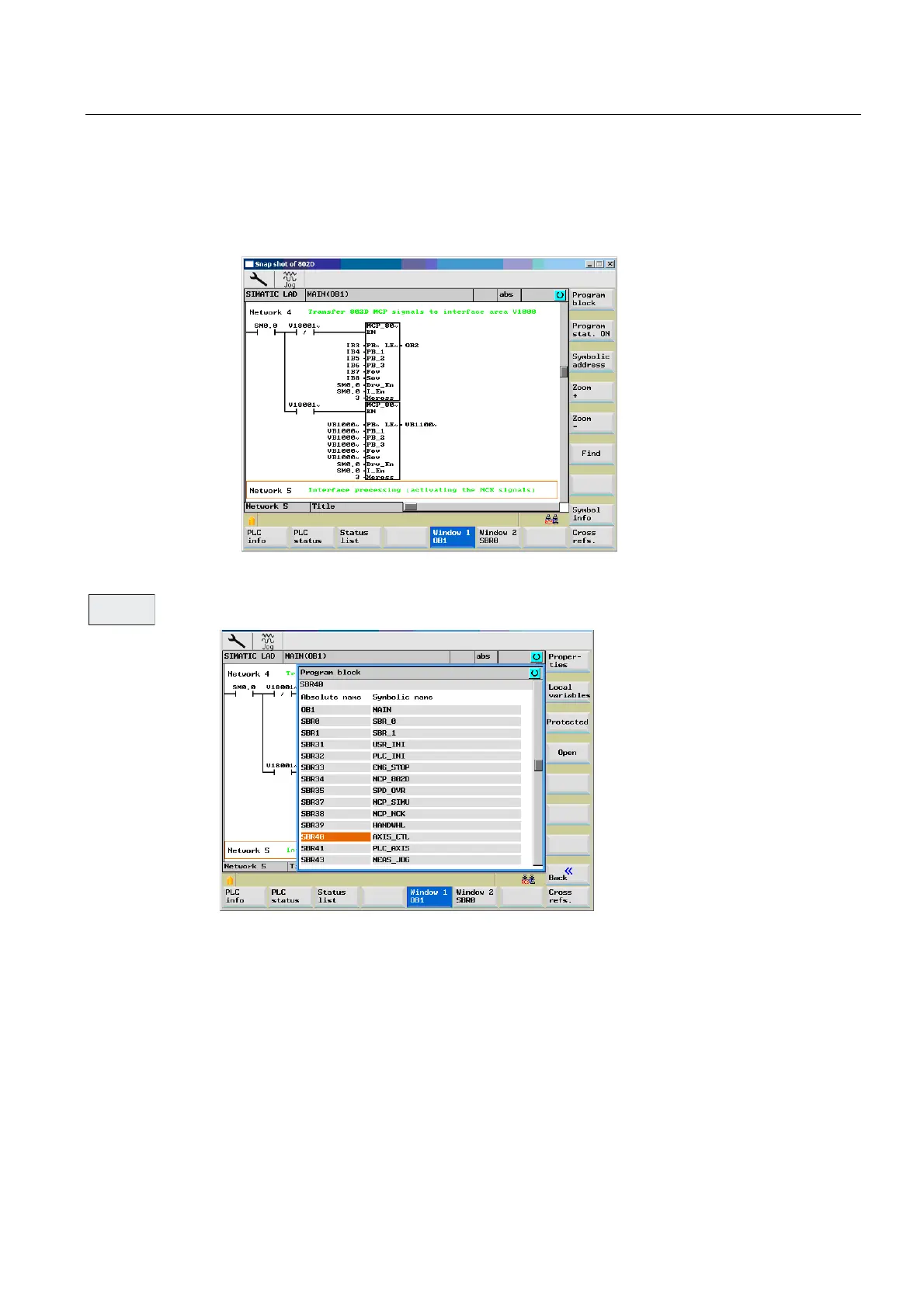 This softkey can be used to select the list of the PLC program blocks.