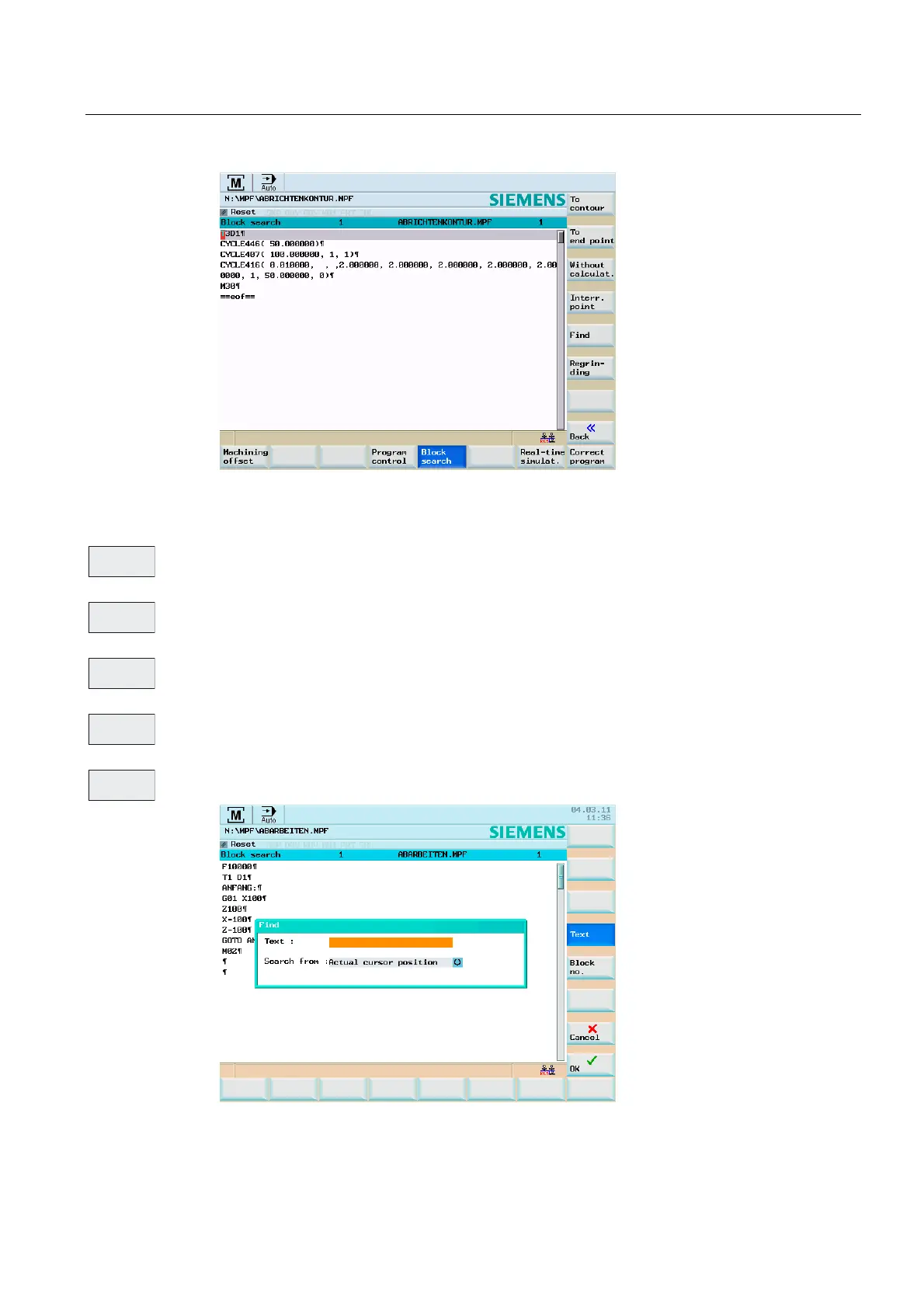 Use this softkey to perform the block search by entering a term you are looking for.