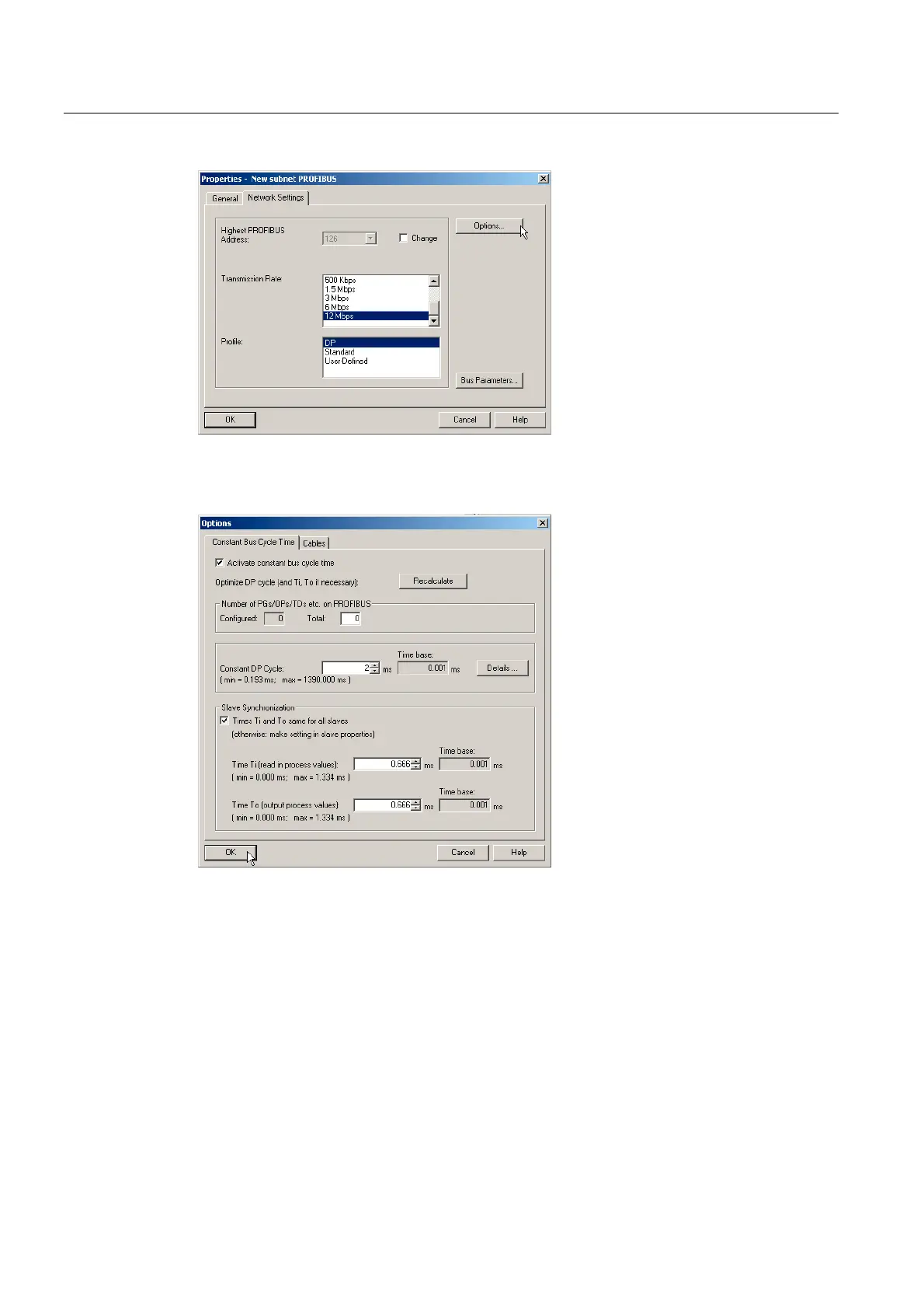 13.1 Configuration of the properties of the network interface for PROFIBUS