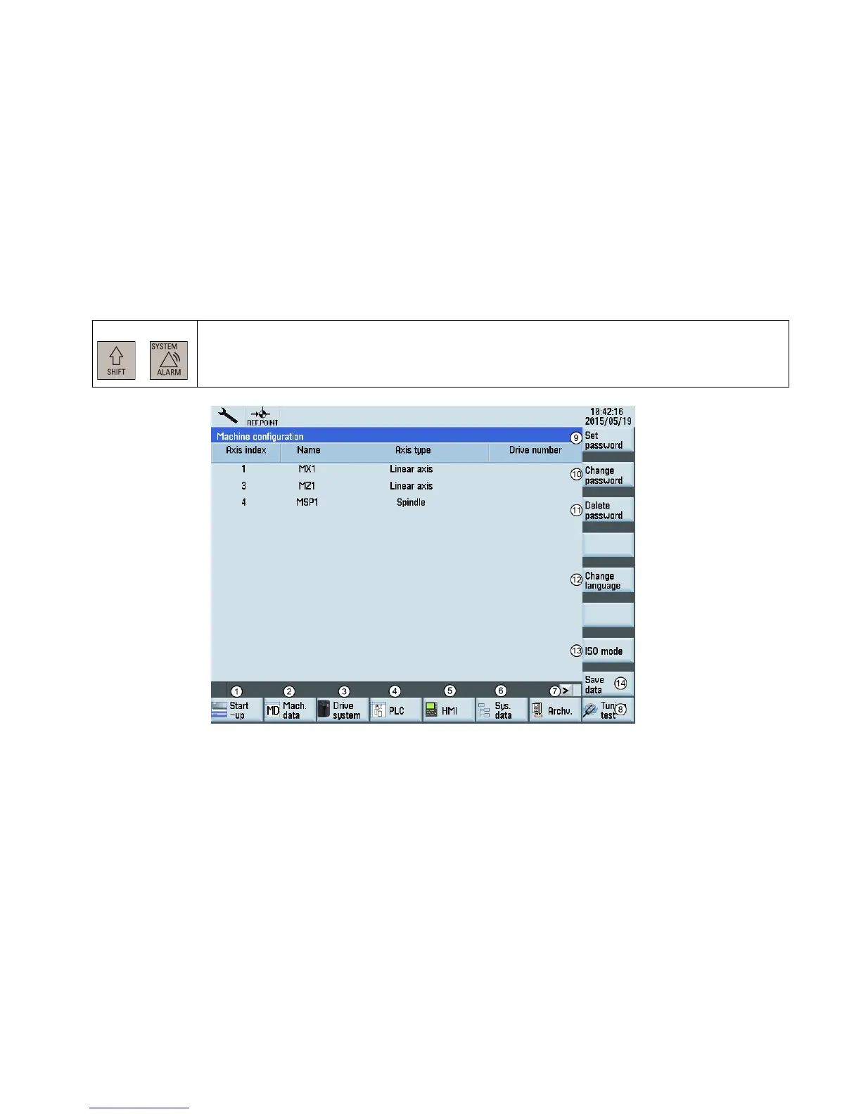 ① Sets the NC, PLC and HMI start up modes