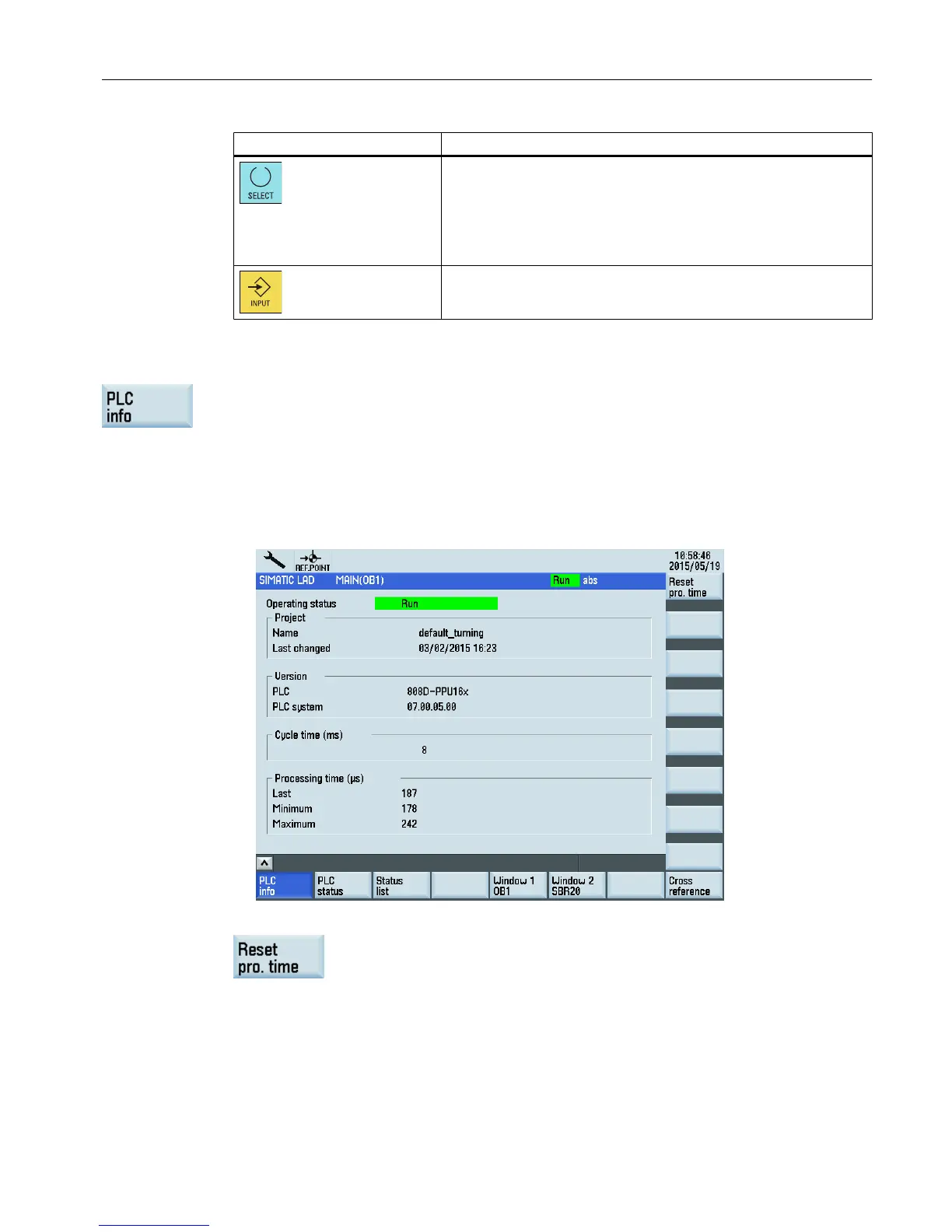 Press this softkey on the PLC program start screen to view the following PLC properties: