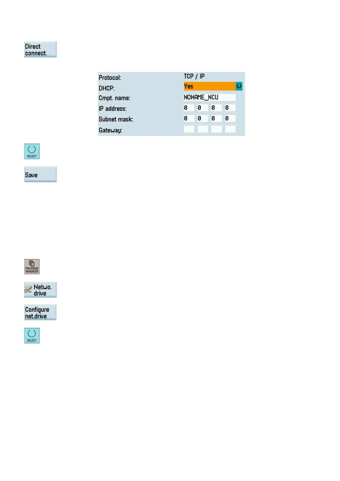 Press this softkey to go to the window for configuring the network drives.