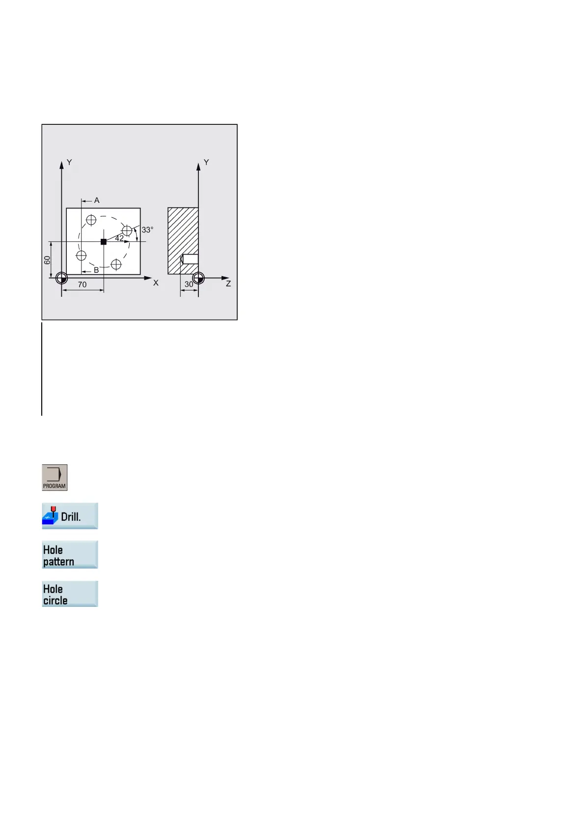 starting angle is 33 degrees. The safety clearance in drilling axis Z is 2 mm.