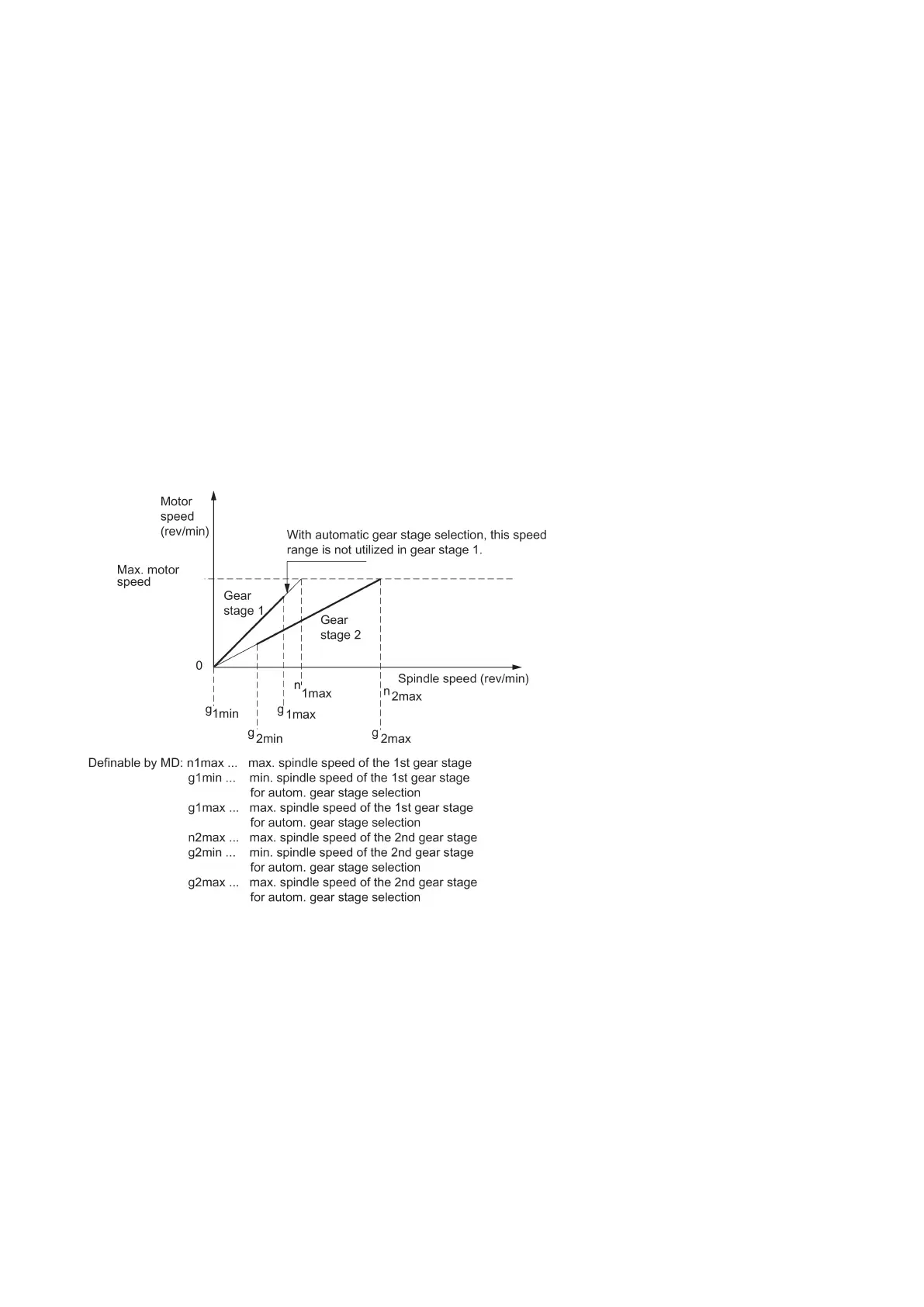 The gear stage can be permanently defined in the part program with M41 to M45. If a gear stage is defined by M41 to M45,
