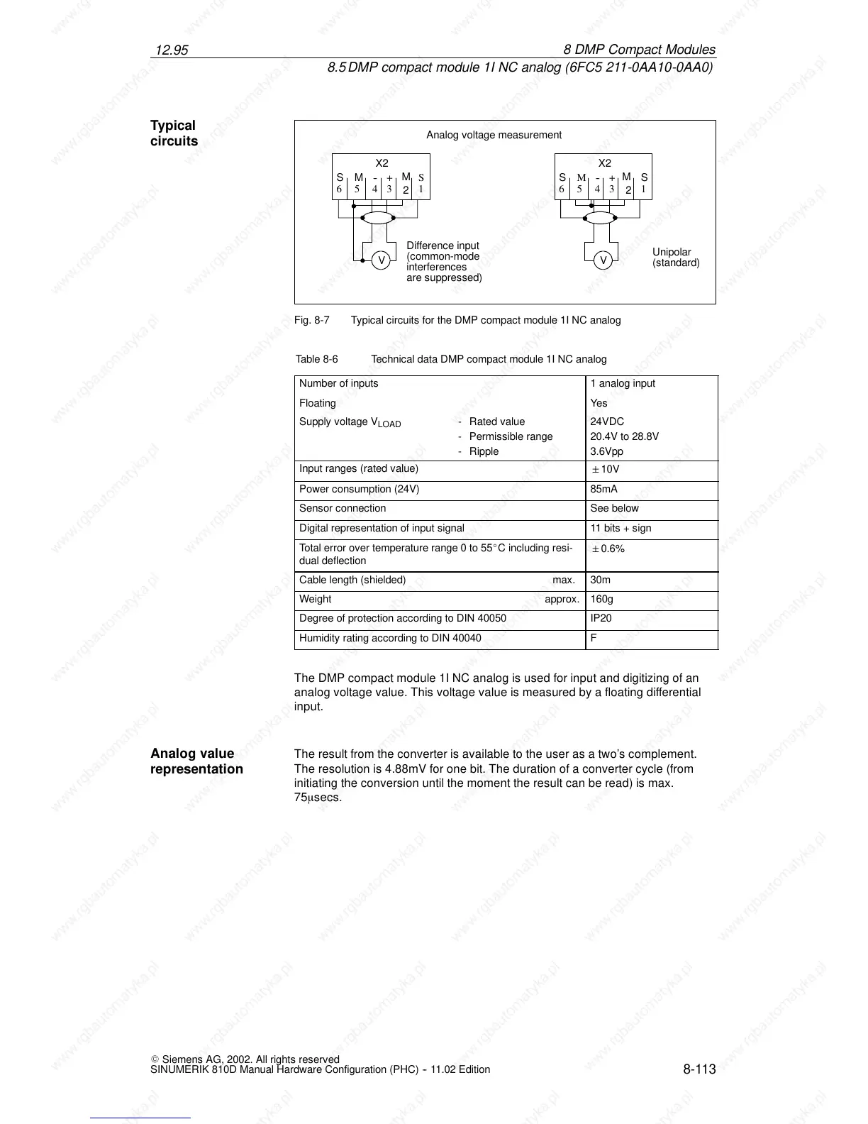 Fig. 8-7 Typical circuits for the DMP compact module 1I NC analog