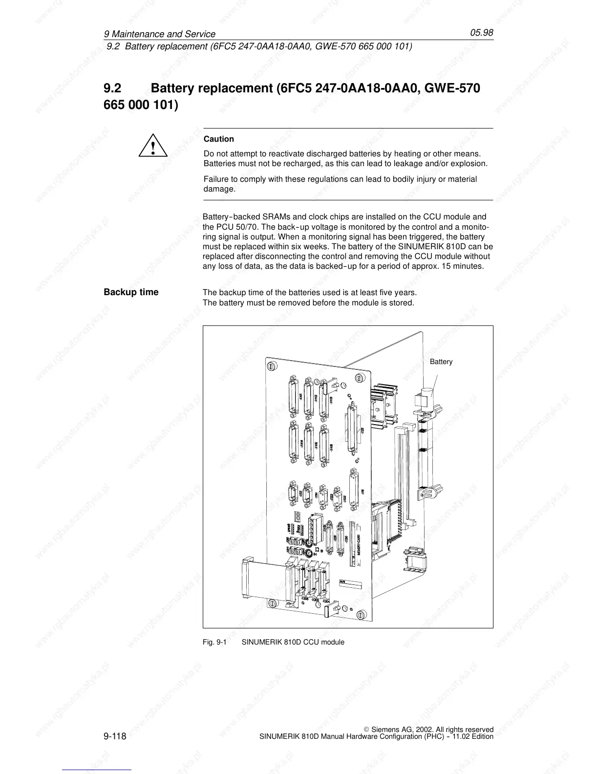 9.2 Battery replacement (6FC5 247-0AA18-0AA0, GWE-570