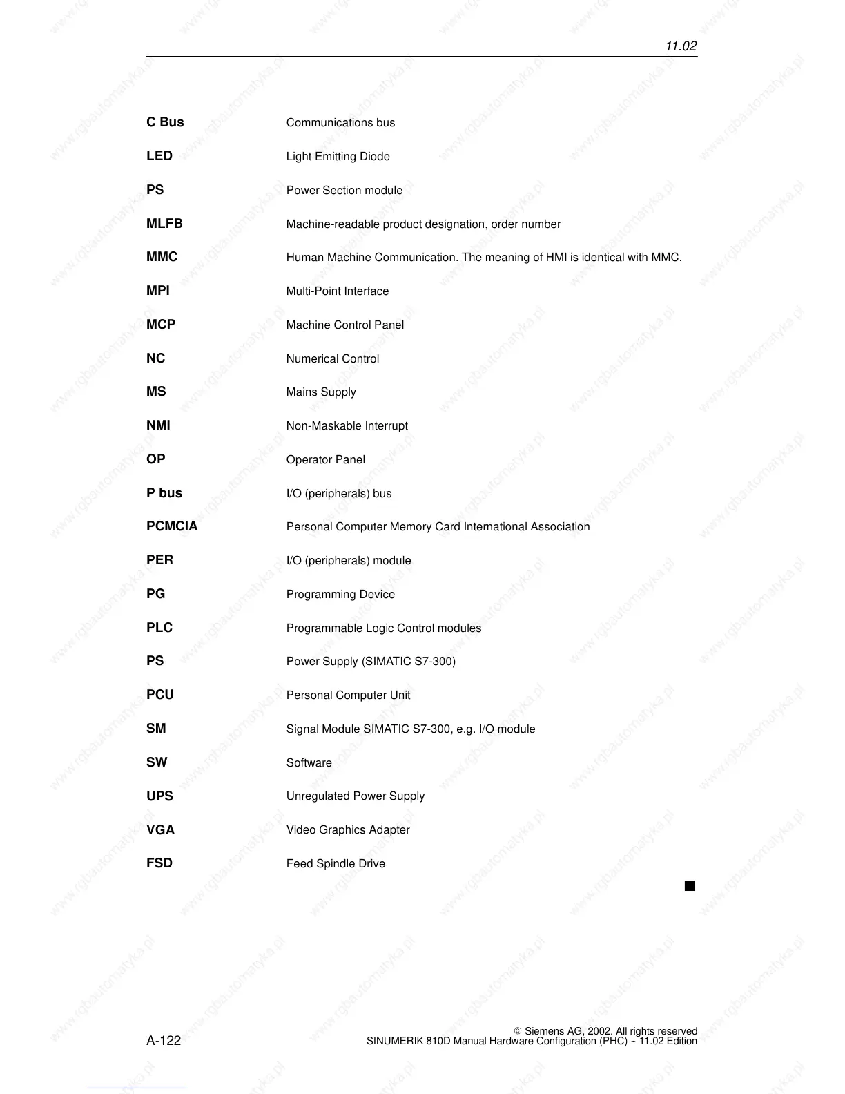 SINUMERIK 810D Manual Hardware Configuration (PHC) -- 11.02 Edition