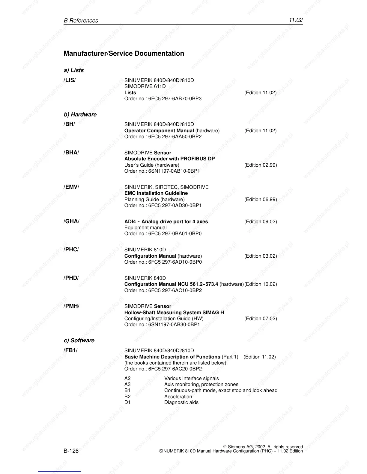SINUMERIK 810D Manual Hardware Configuration (PHC) -- 11.02 Edition