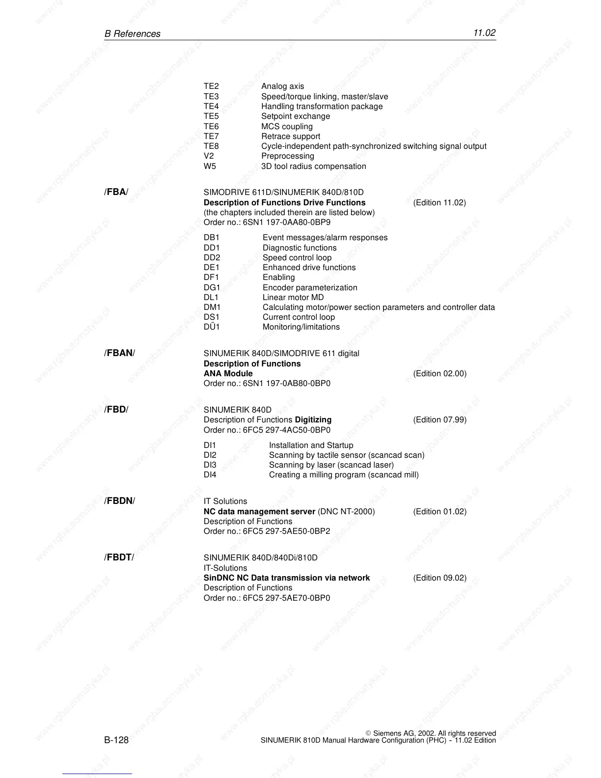 SINUMERIK 810D Manual Hardware Configuration (PHC) -- 11.02 Edition