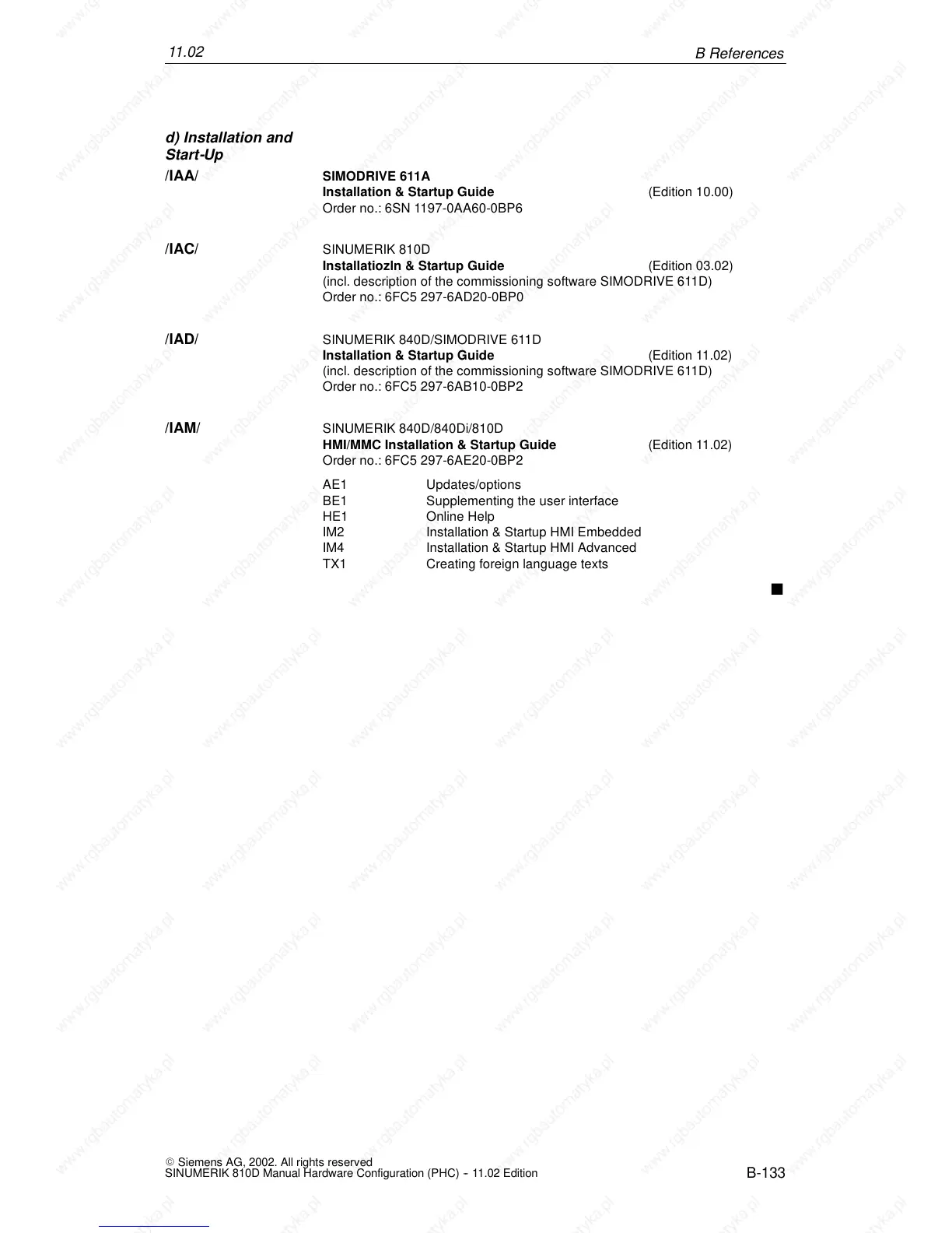 SINUMERIK 810D Manual Hardware Configuration (PHC) -- 11.02 Edition