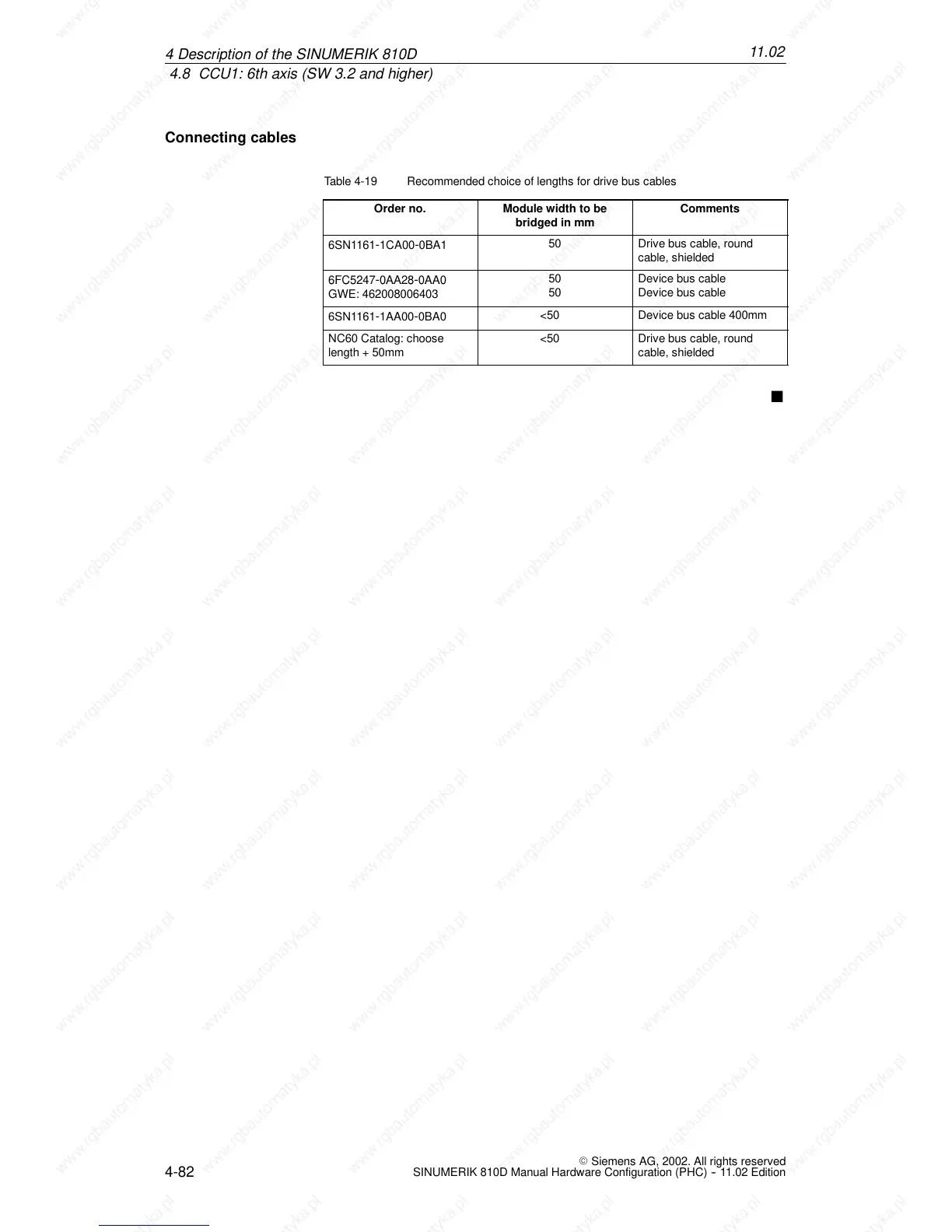 Table 4-19 Recommended choice of lengths for drive bus cables