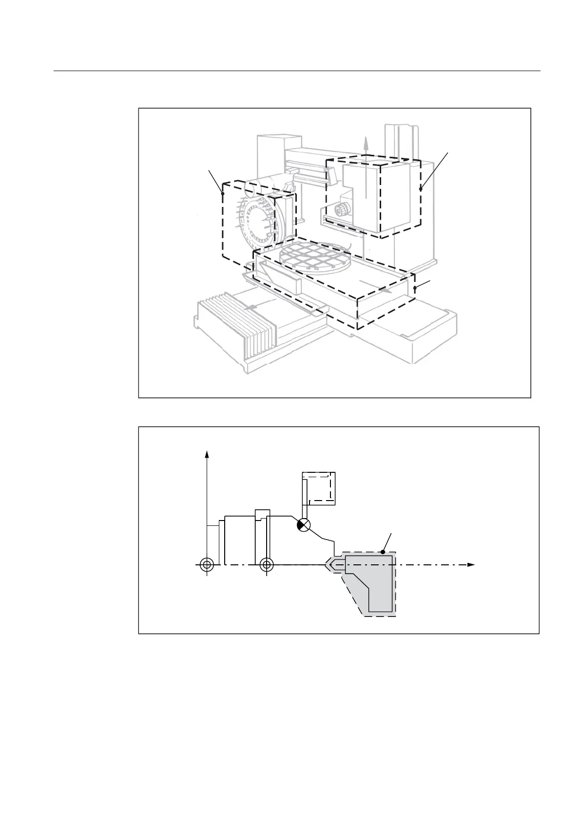 Figure 2-10 Example of a turning machine with relative protection zone for tailstock