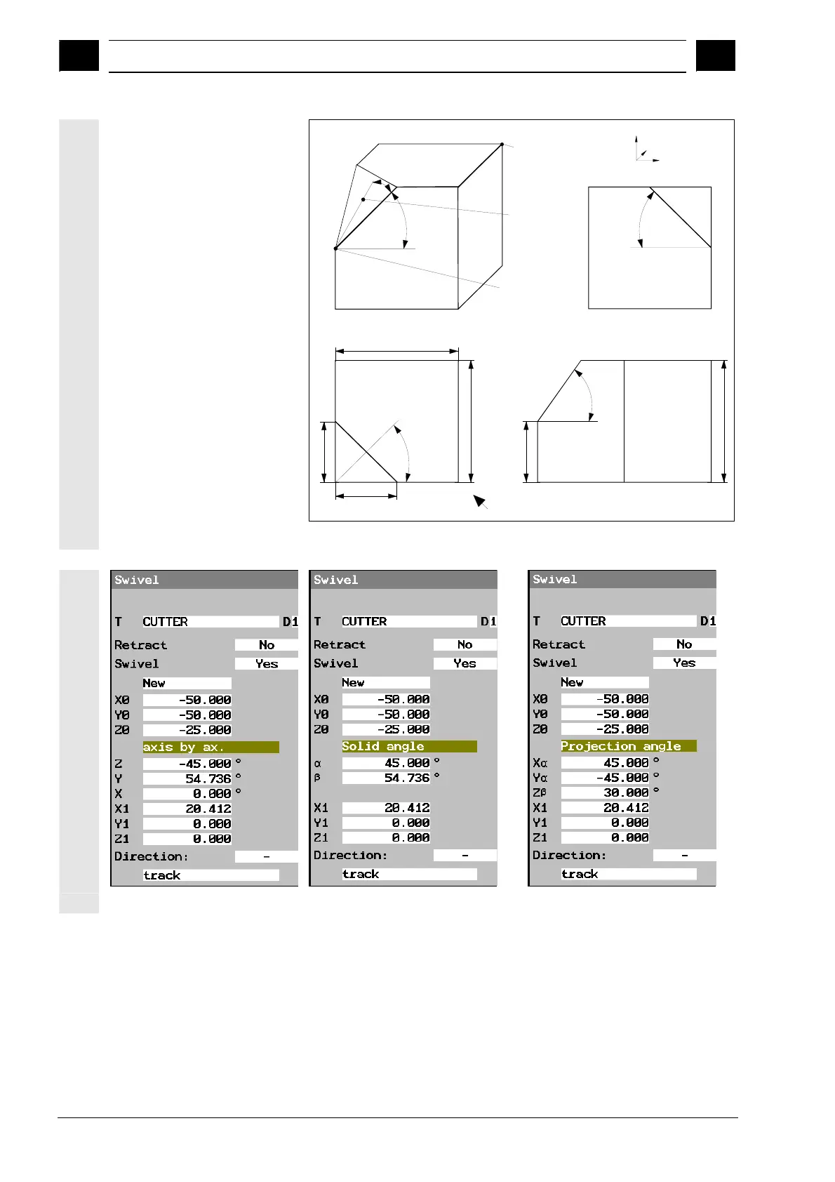 Swivel (axial) Swivel (solid angle) Swivel (projection angle)