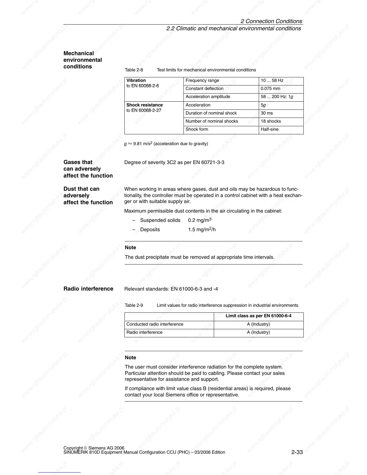Table 2-9 Limit values for radio interference suppression in industrial environments