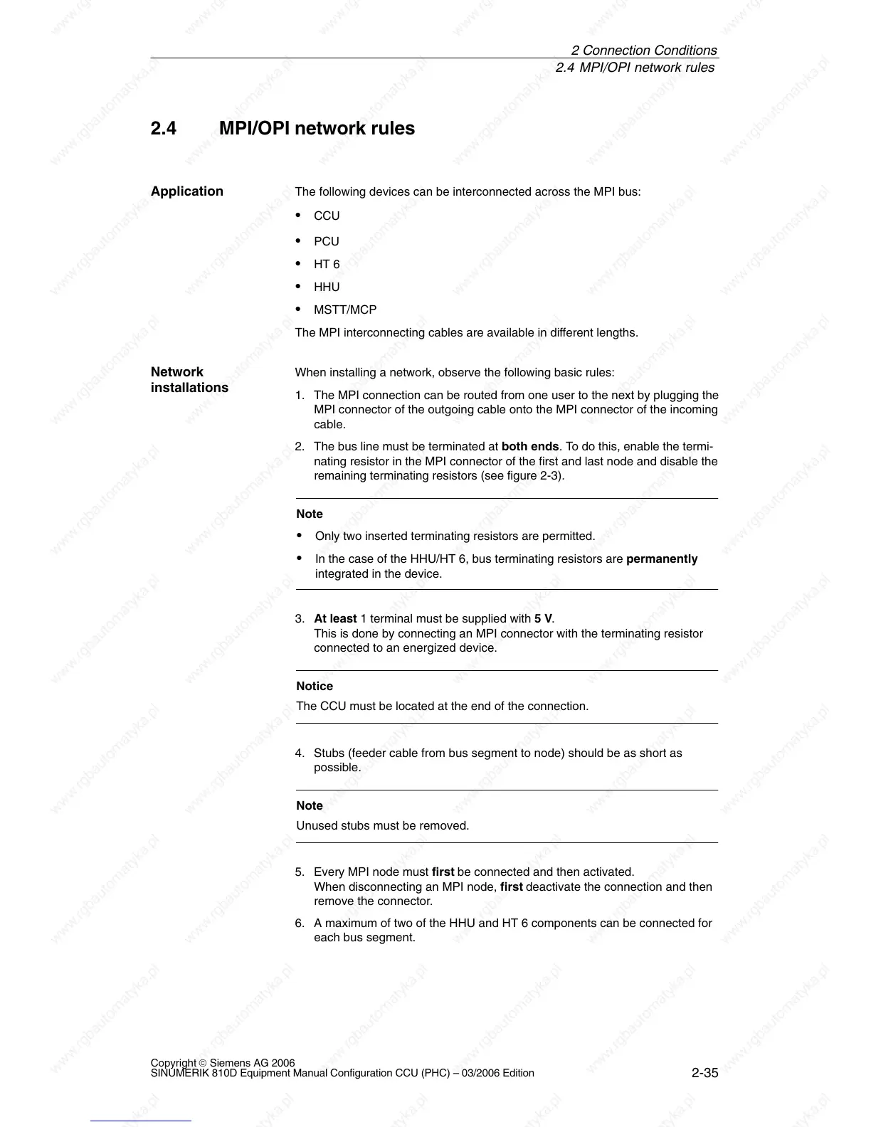 SINUMERIK 810D Equipment Manual Configuration CCU (PHC) – 03/2006 Edition