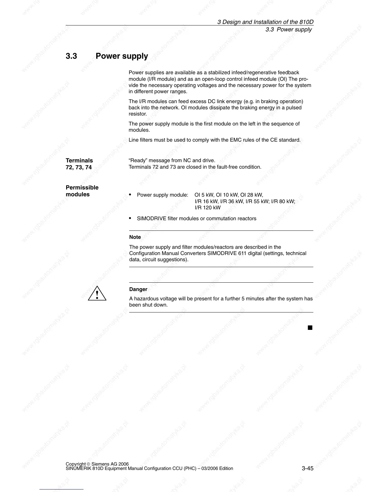 SINUMERIK 810D Equipment Manual Configuration CCU (PHC) – 03/2006 Edition