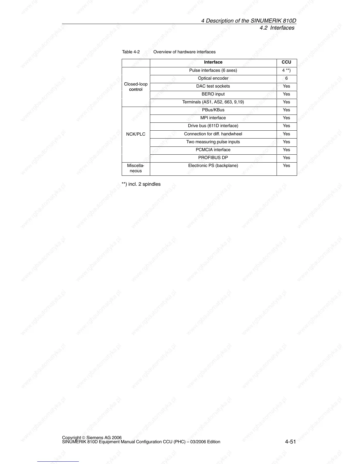 SINUMERIK 810D Equipment Manual Configuration CCU (PHC) – 03/2006 Edition