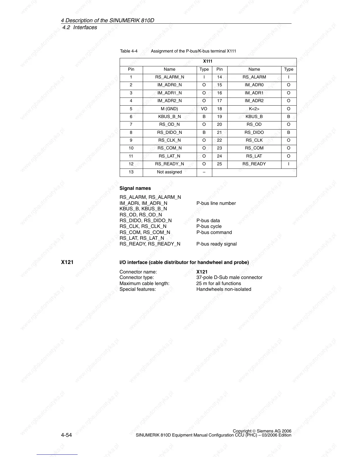 Table 4-4 Assignment of the P-bus/K-bus terminal X111