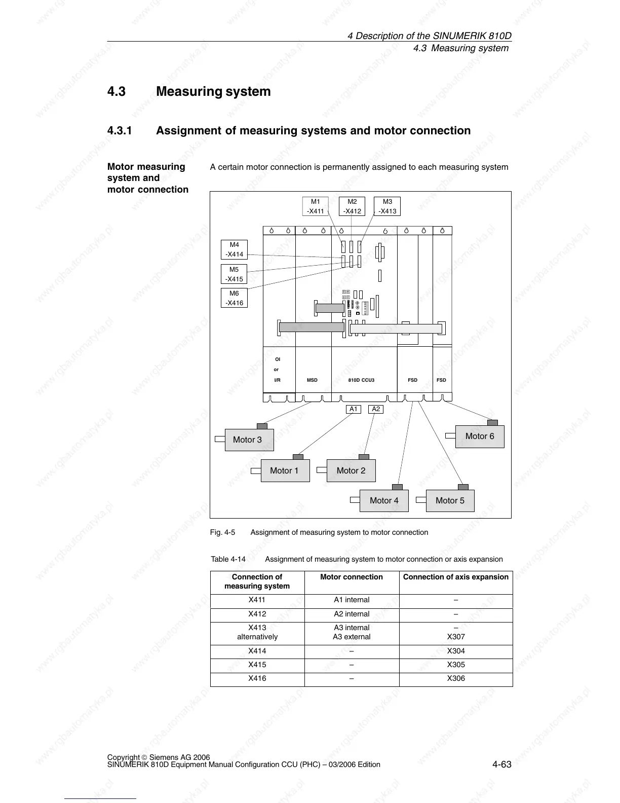 Table 4-14 Assignment of measuring system to motor connection or axis expansion