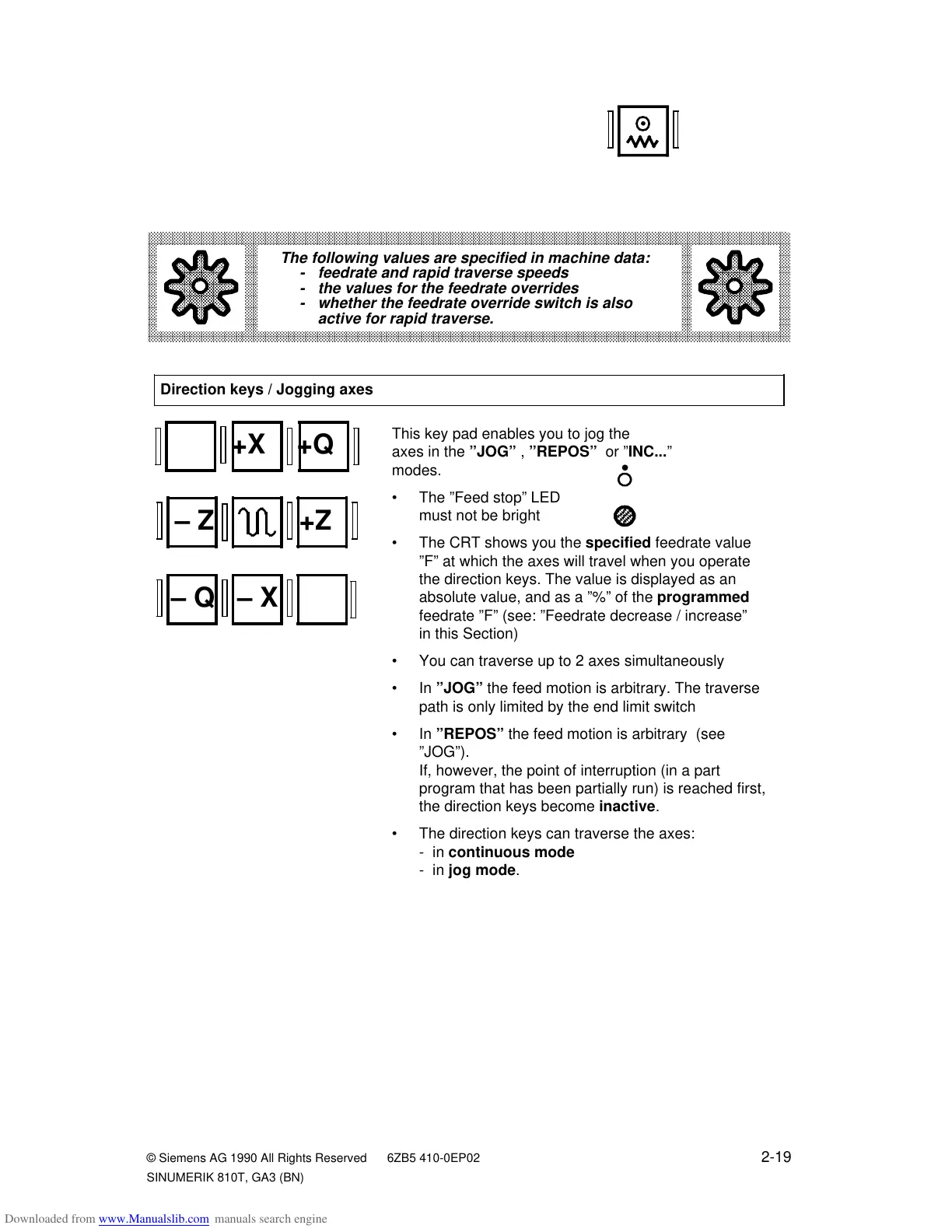 • In ”JOG” the feed motion is arbitrary. The traverse