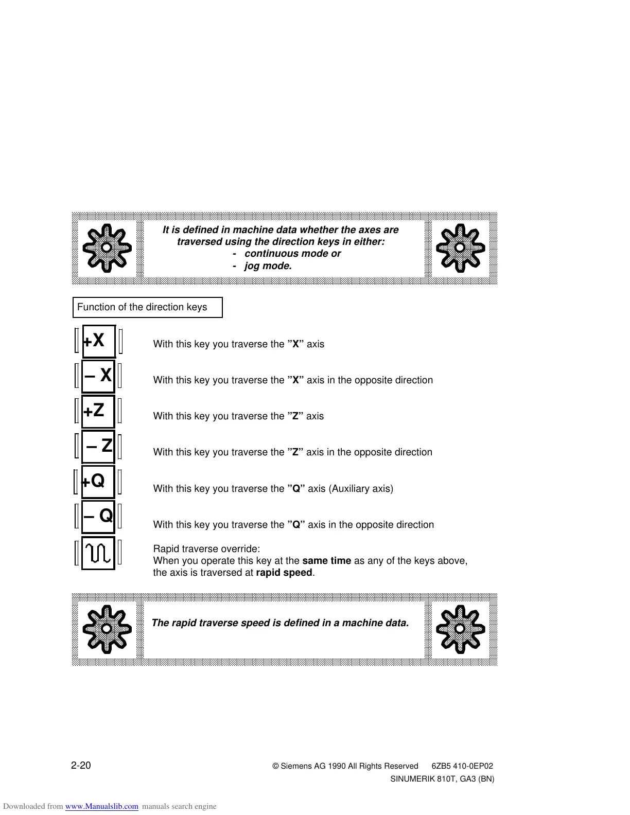 The axis traverses as long as you press the direction key. Traversing stops