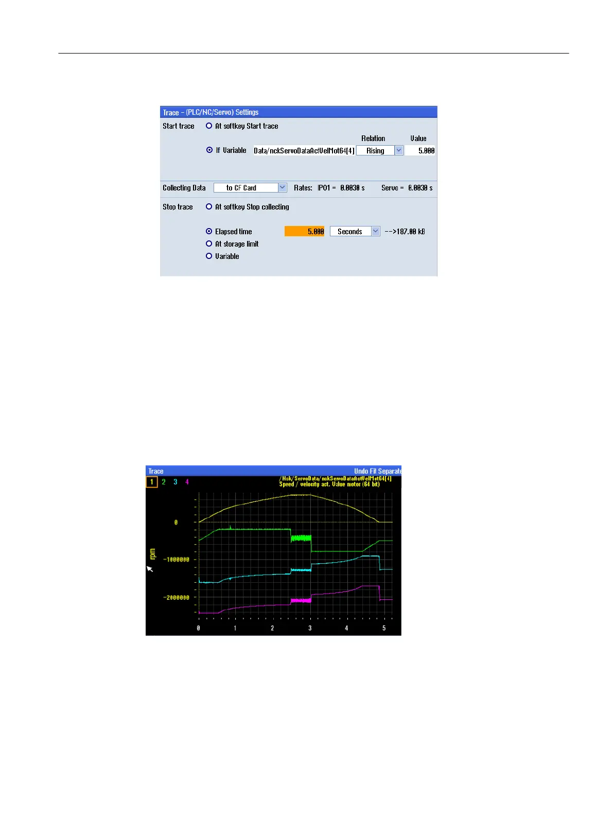 → "Display trace" softkey → "Start trace" softkey → <RESET> key → <CYCLE