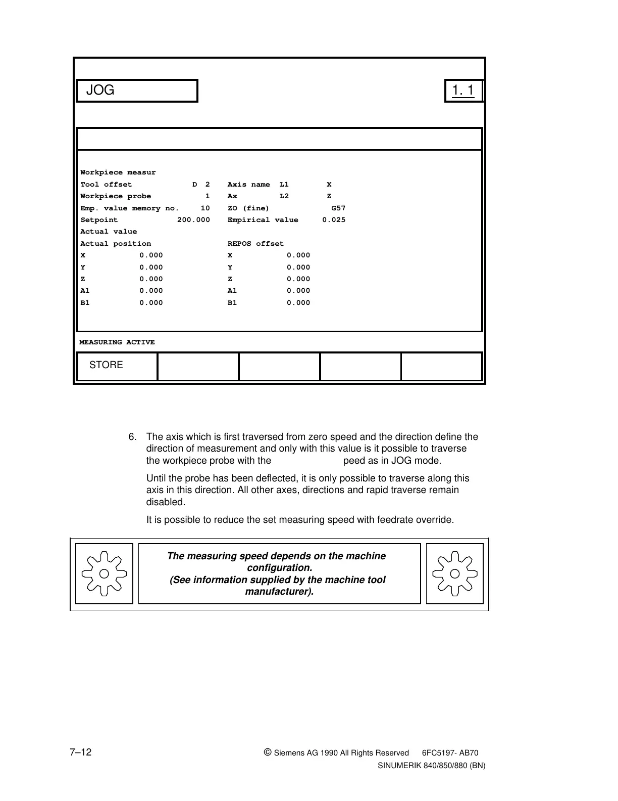 7 Measuring in JOG Mode (SINUMERIK 880/880 GA2) 01.93