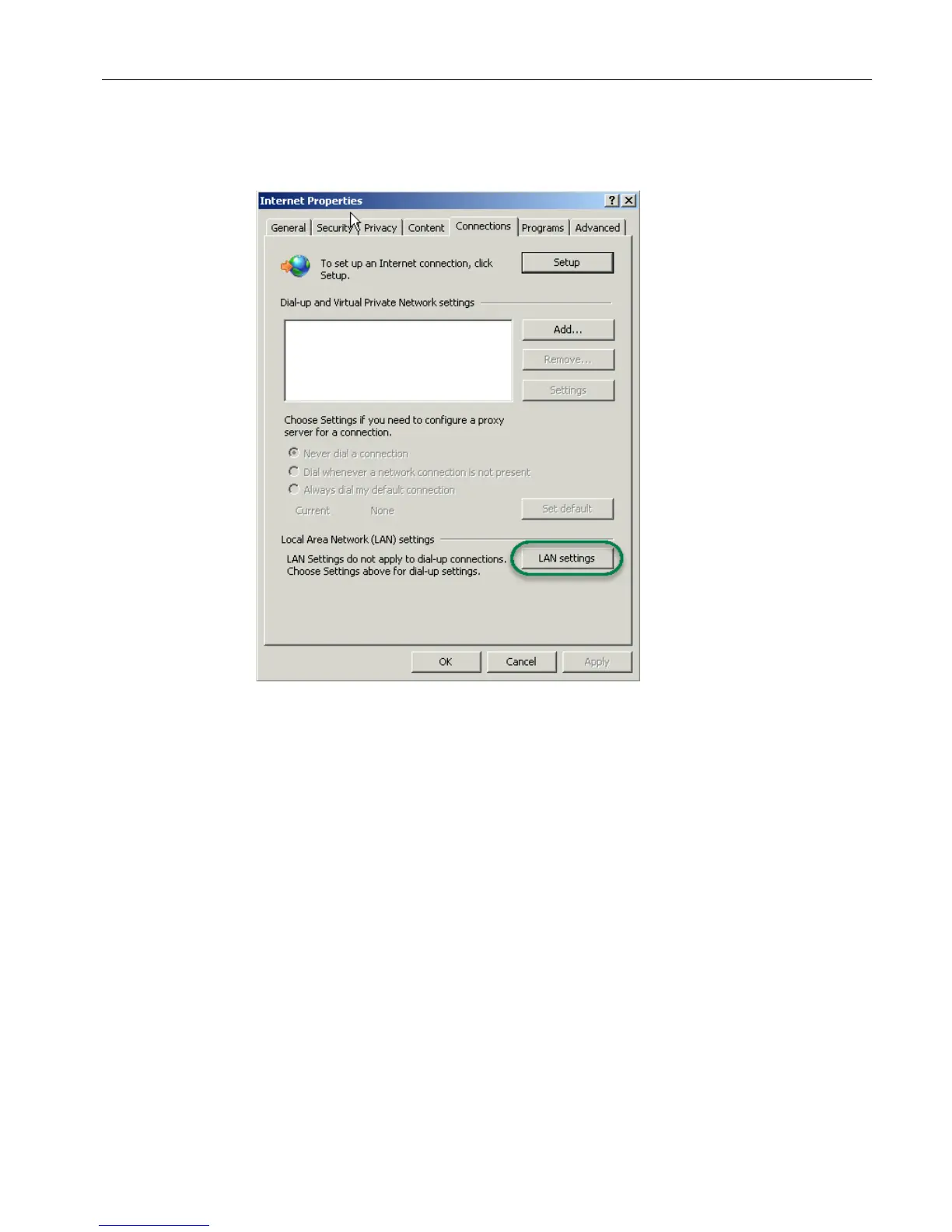 – In the "Local Area Network (LAN) settings" group box, click the "LAN settings" button.