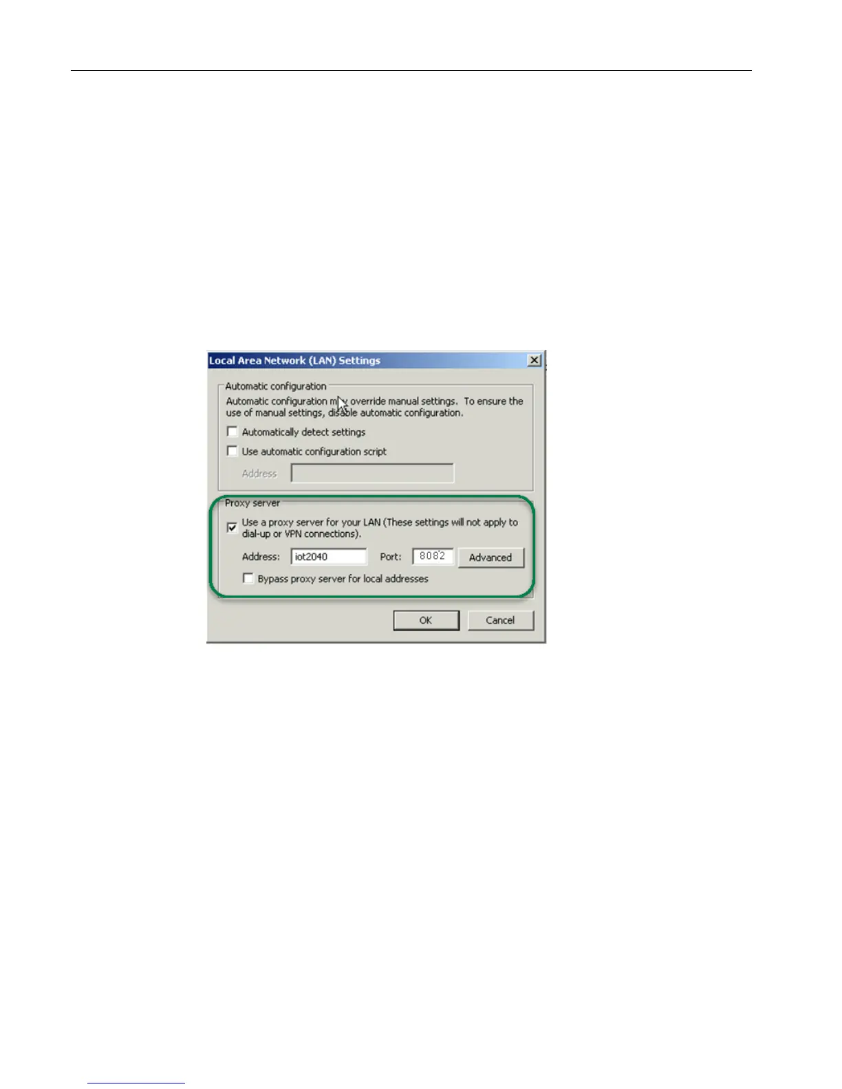 12.The "Local Area Network (LAN) settings" window opens.