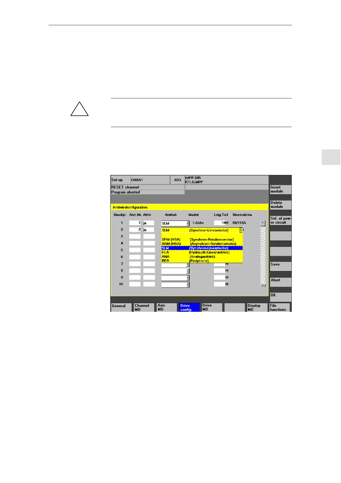 – Select drive type: “SLM” (synchronous linear motor) ––> Add module