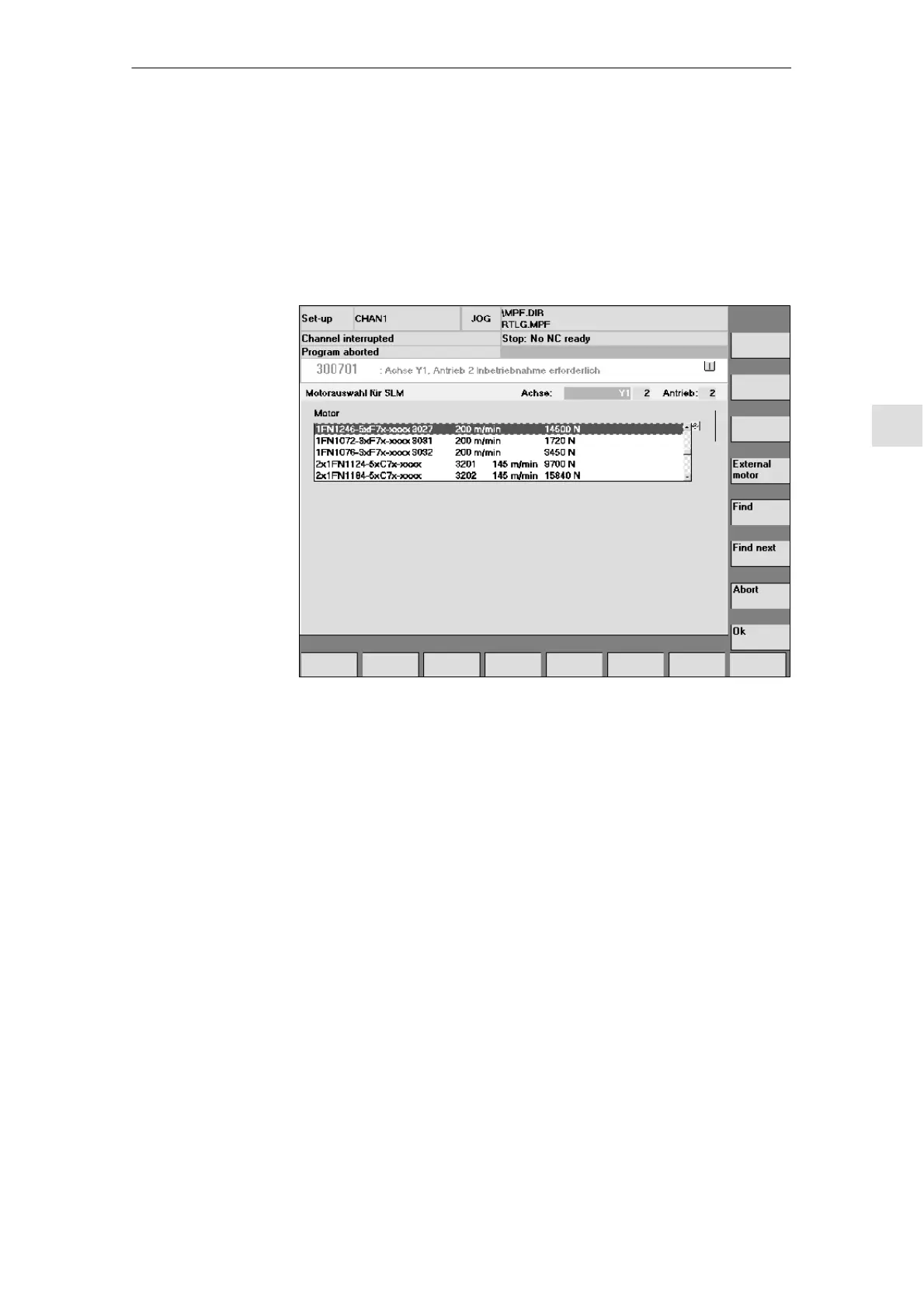 Message 300701: “Start-up required” must appear before the motor is selec-