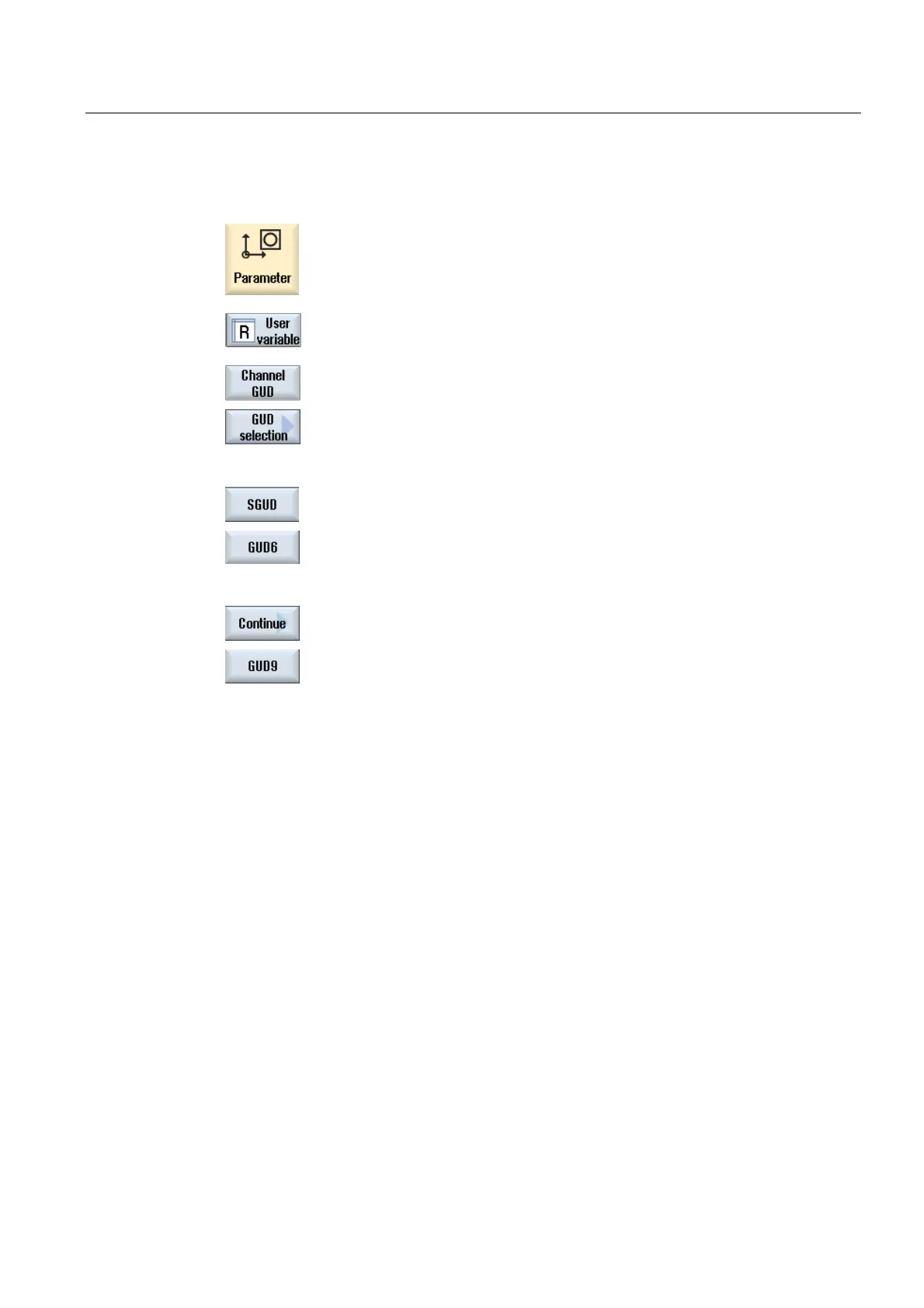 Press the "Continue" softkey and the "GUD7" to "GUD9" softkeys if