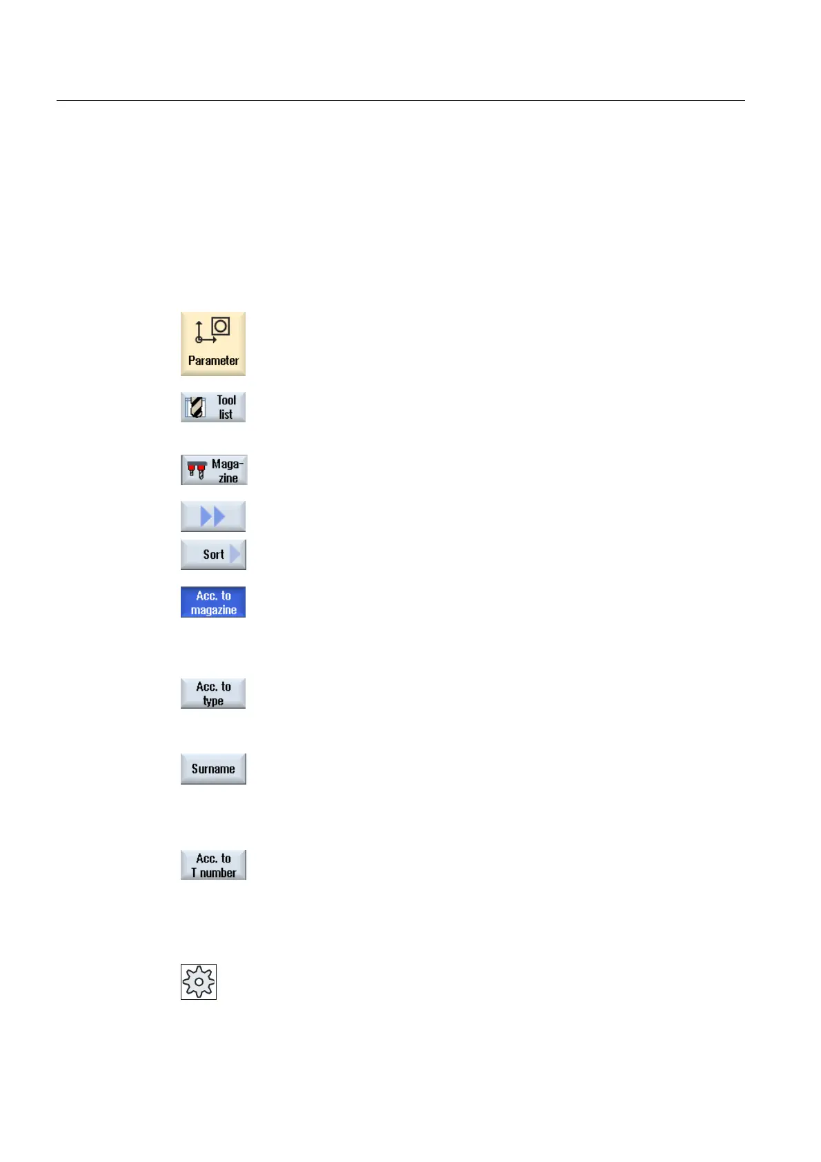 Press the "Acc. to T number" softkey to display the tools names sorted