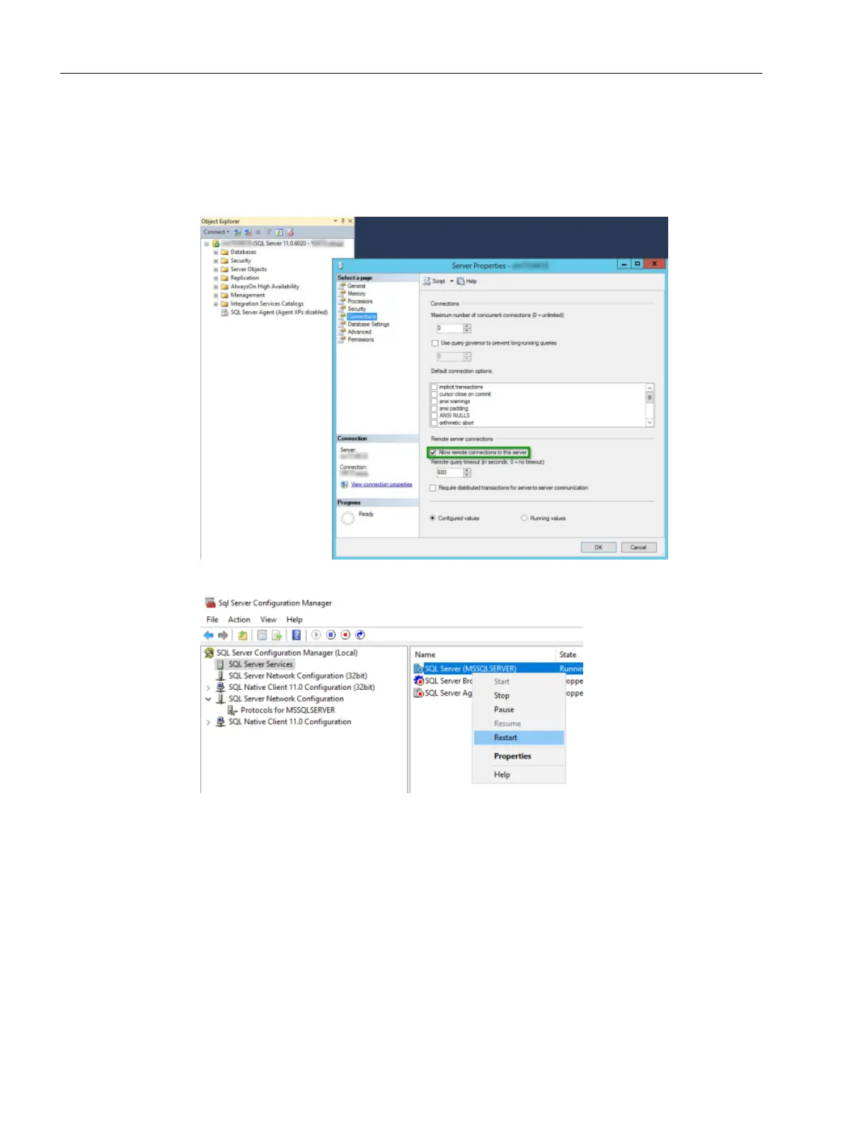 – Select the "Connections" page and check the "Allow remote connections to this server"