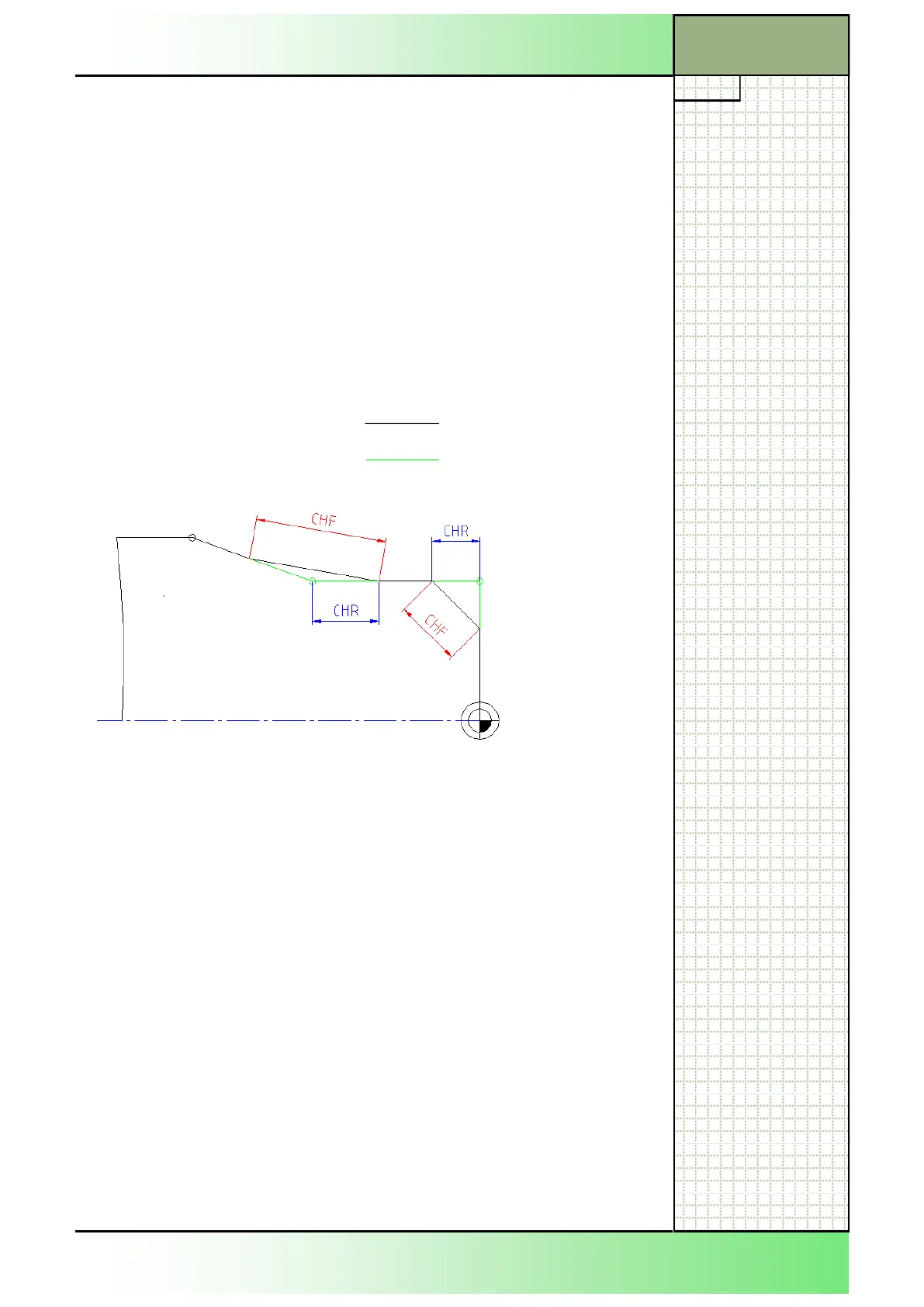 Statement of the length of the chamfer Code CHF=