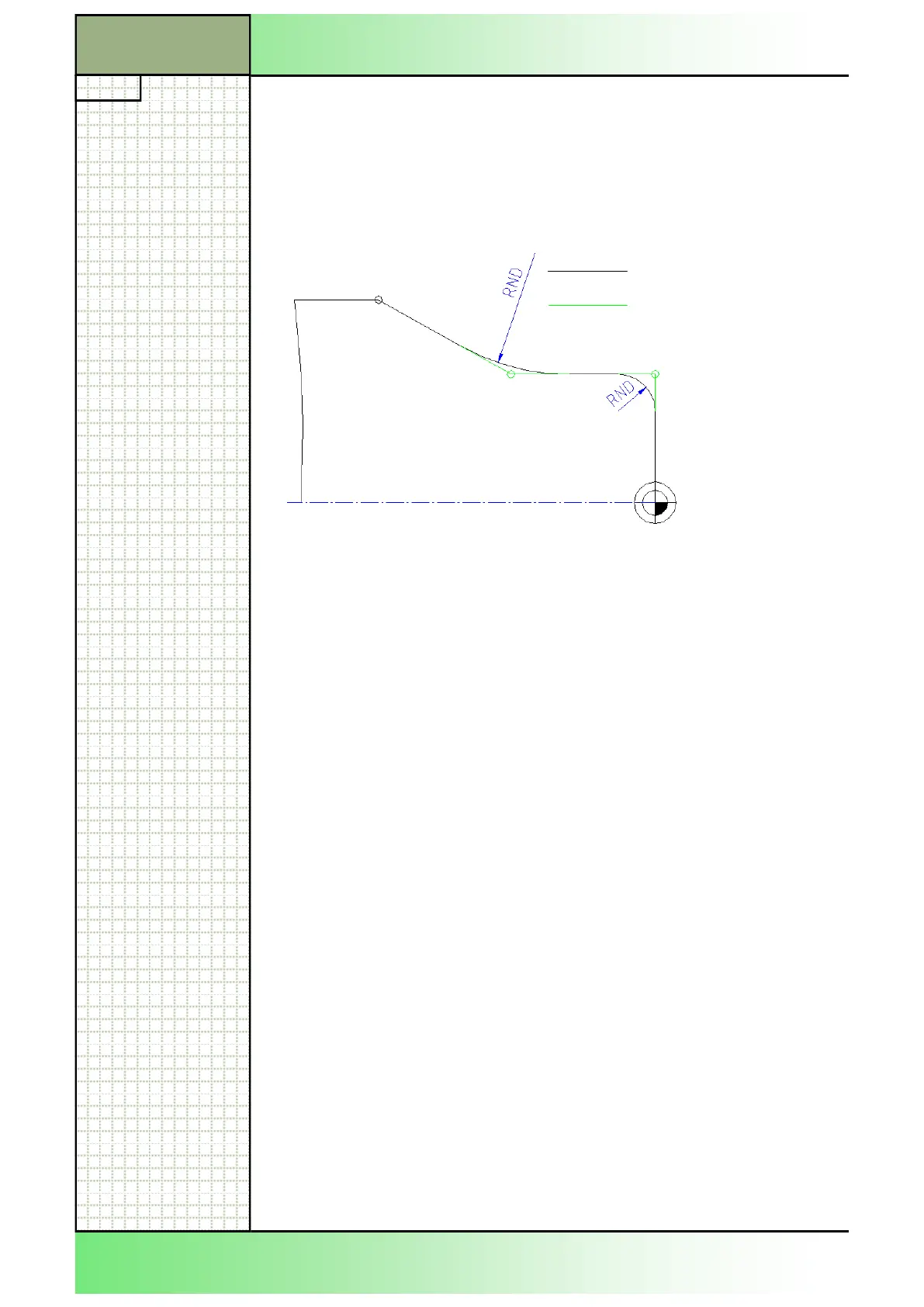 N60 X40 RNDM=0.5 Straight to P1, Tangential rounding