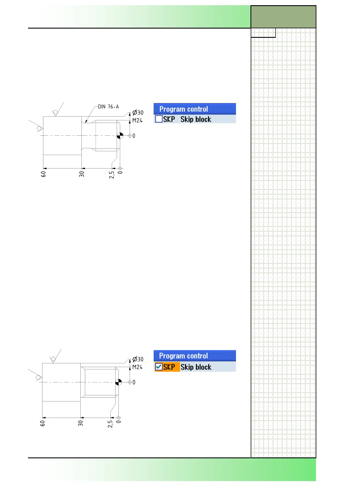 manipulate the machining using the optional block technique.
