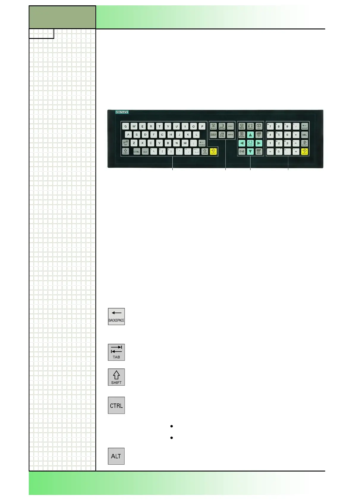 Below follows a description of the basic keys of the CNC-full keyboard.