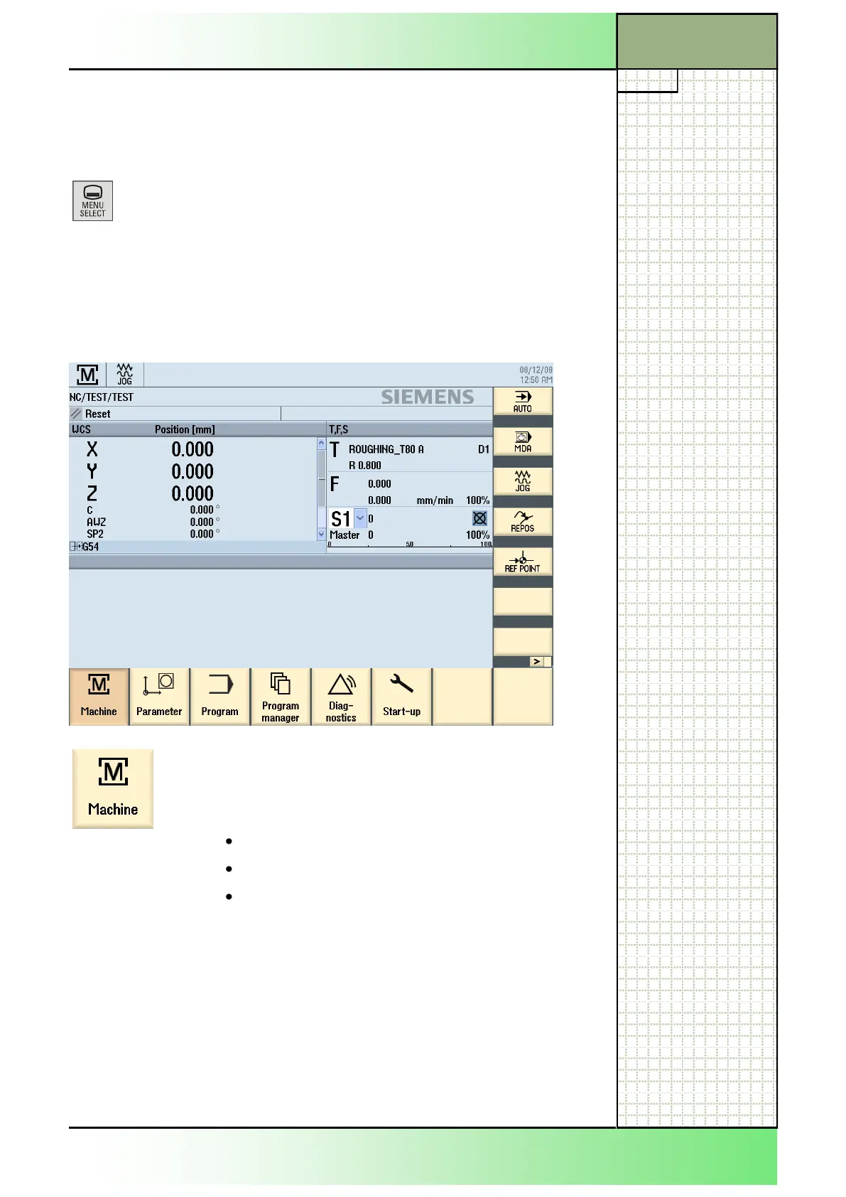 “JOG“, “MDA“, “AUTO“ and 2 functions: “REPOS, “REFPOINT).