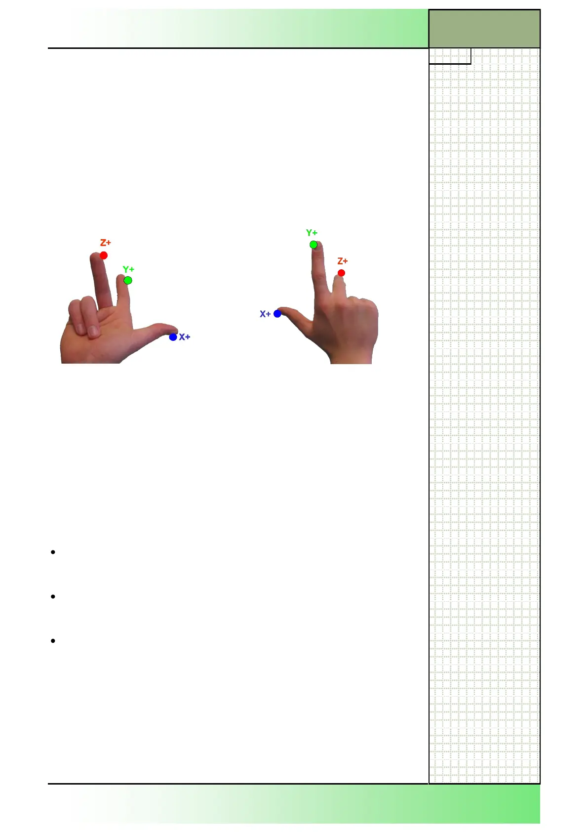 resent the axes: “X” (thumb), “Y” (first finger) and “Z” (middle finger). The