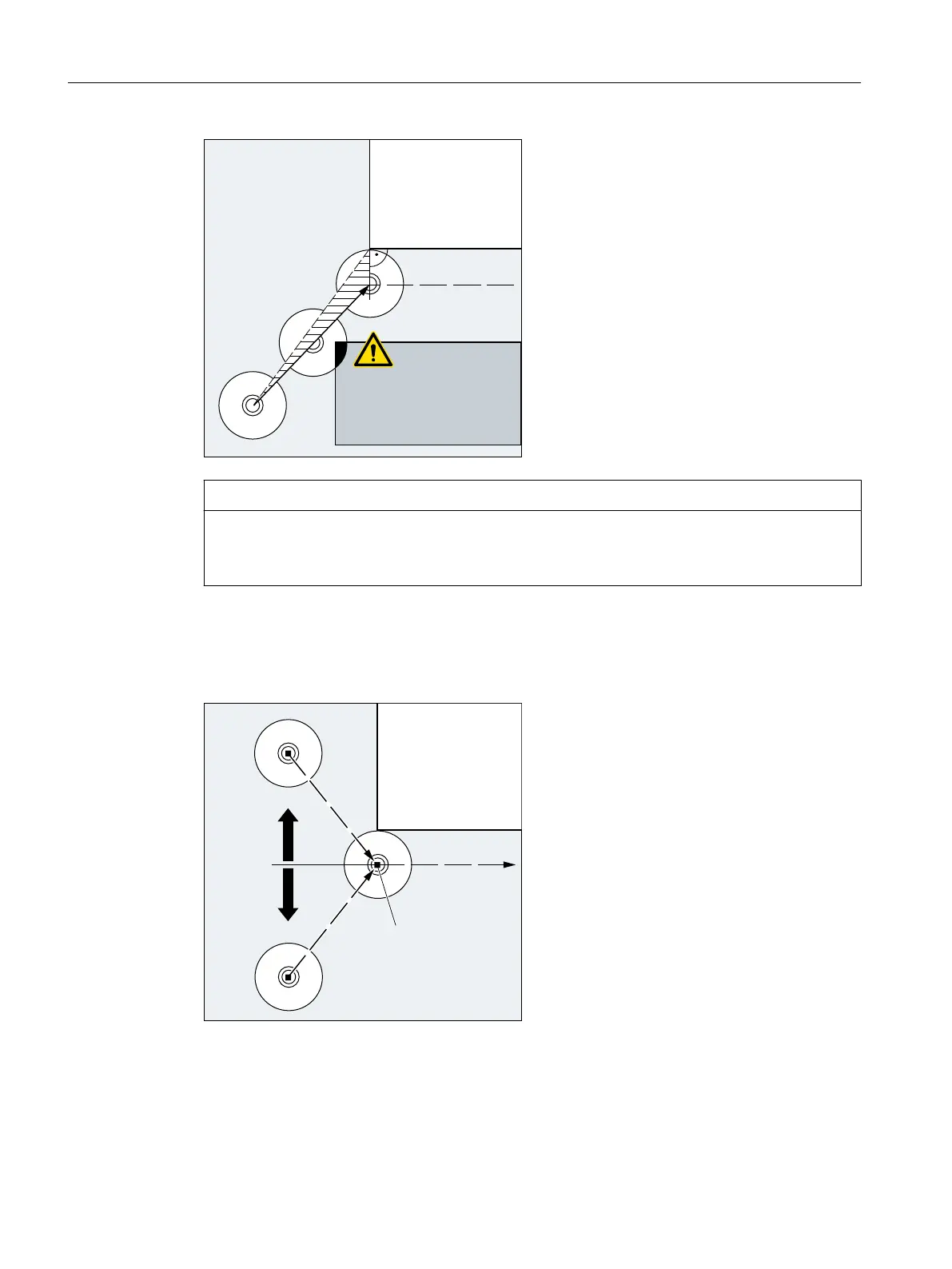 Prior to the approach, the tool can be located in front of or behind the contour. The path tangent